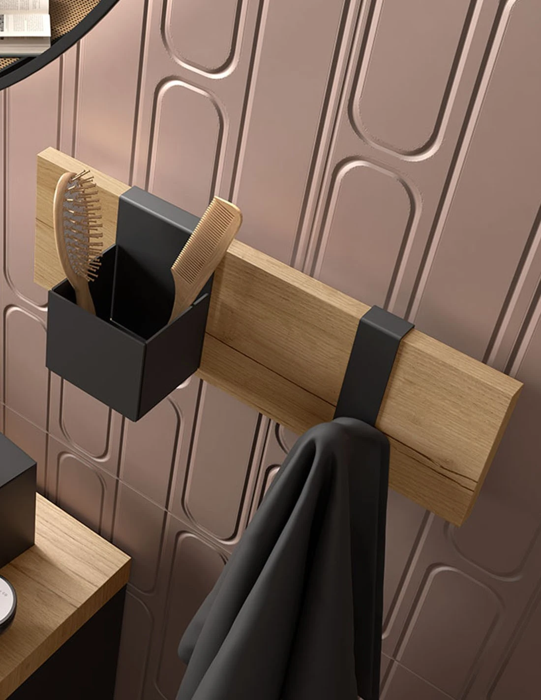 Nuestros accesorios de muebles de baño están pensados para ayudarte a mantener tu baño ordenado y libre de desorden. Desde elegantes estanterías y prácticos organizadores hasta sofisticados cestos y caddies, cada pieza está diseñada para maximizar el espacio de almacenamiento. Los accesorios como los portatoallas, los dispensadores de jabón y los portacepillos se integran perfectamente con tus muebles de baño, ofreciendo soluciones prácticas sin comprometer el estilo.