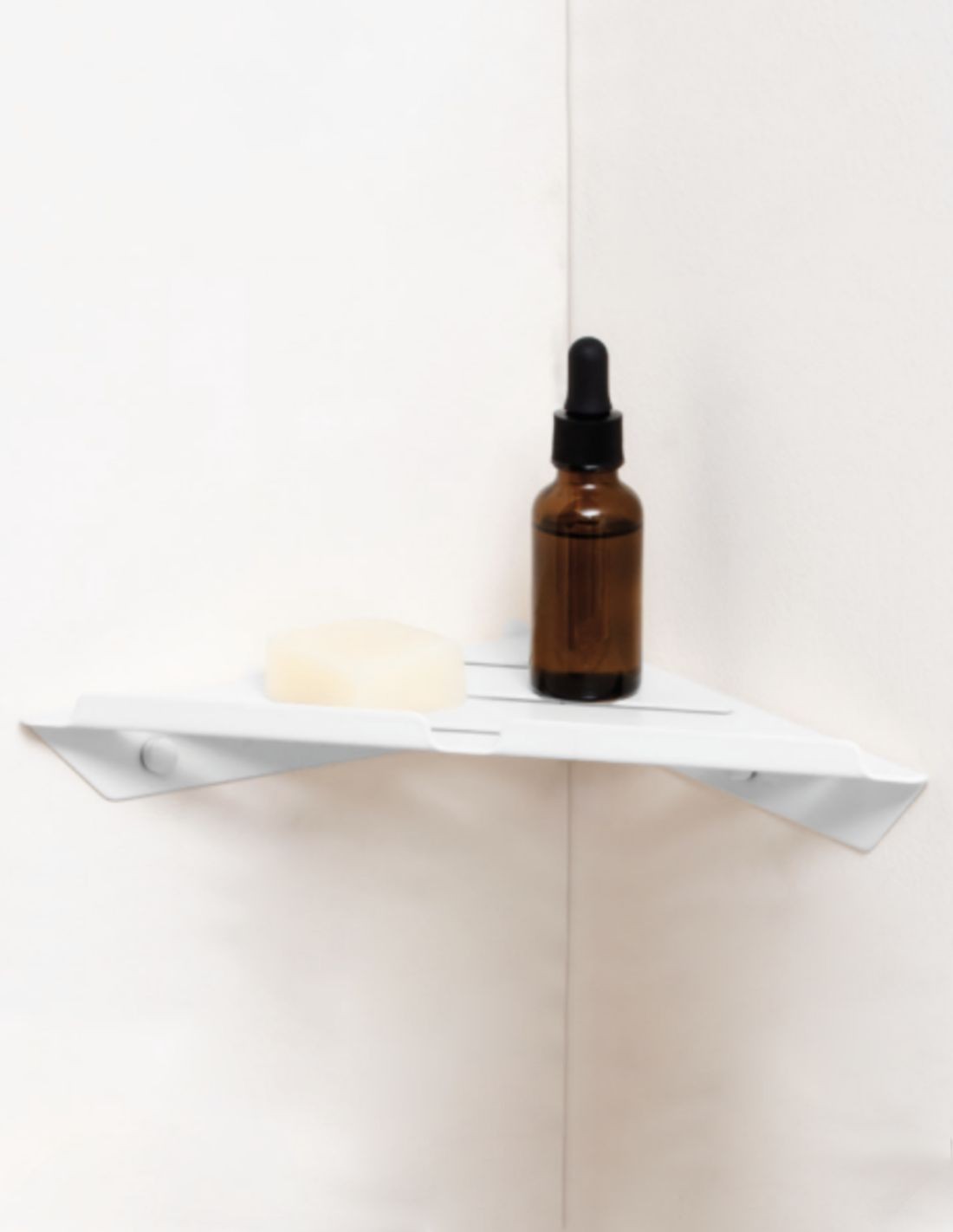Su diseño triangular está pensado específicamente para encajar en las esquinas, aprovechando áreas que de otro modo quedarían sin usar y manteniendo los productos al alcance de la mano.