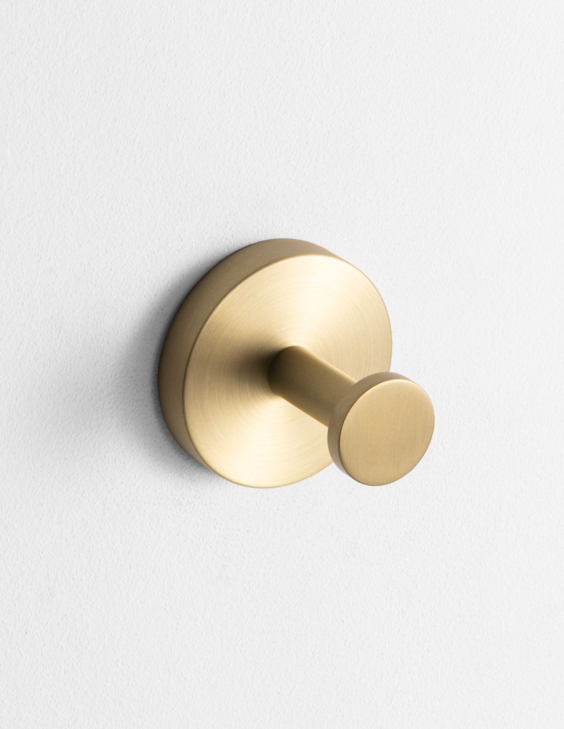 El Perchero dorado - ECO de Manillons Torrent es el accesorio discreto y elegante que necesitas para cualquier punto de tu baño. Su diseño de una sola percha es perfecto para organizar toallas o albornoces de forma individual, manteniendo una estética limpia y sofisticada.