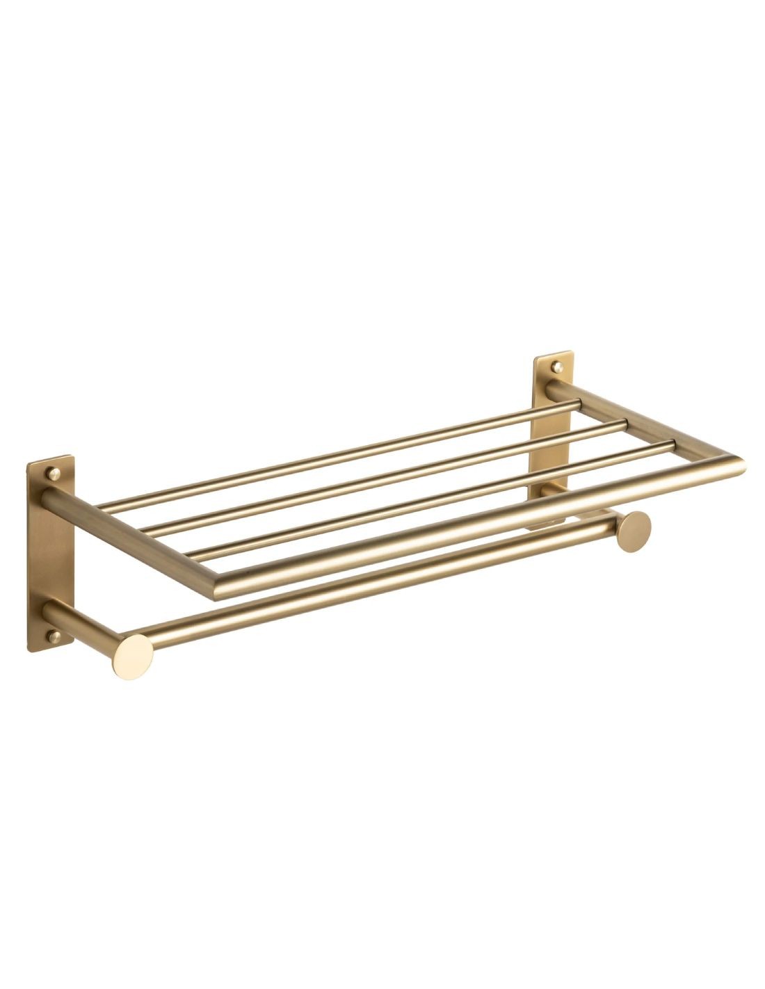 El toallero repisa con perchas dorado modelo ECO de Manillons Torrent combina diseño moderno y funcionalidad para tu baño. Su acabado en oro cepillado y oro brillo aporta un toque elegante y contemporáneo, mientras que su forma práctica facilita colgar toallas con comodidad. Fabricada con materiales duraderos, es una pieza que une estilo, calidad y compromiso sostenible.