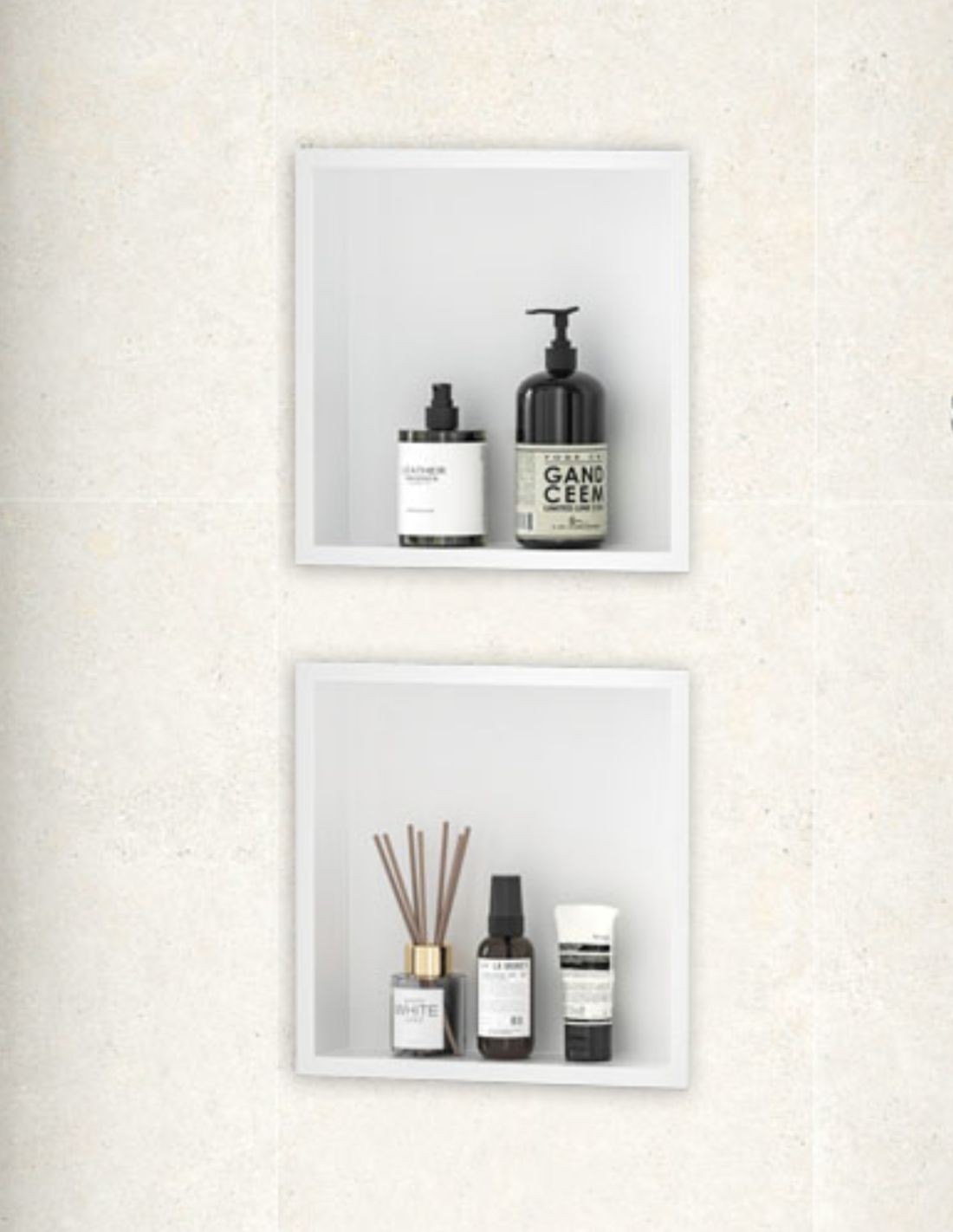 Dale un toque moderno y actual a tu baño colocando nuestra hornacina ducha de acero inoxidable en acabado blanco mate. Es un estante perfecto para guardar jabones, champús, maquinillas de afeitar y otros artículos de ducha y baño.