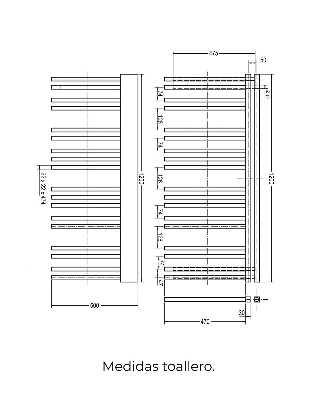 Opción de añadir termostato para convertirlo en toallero eléctrico.
