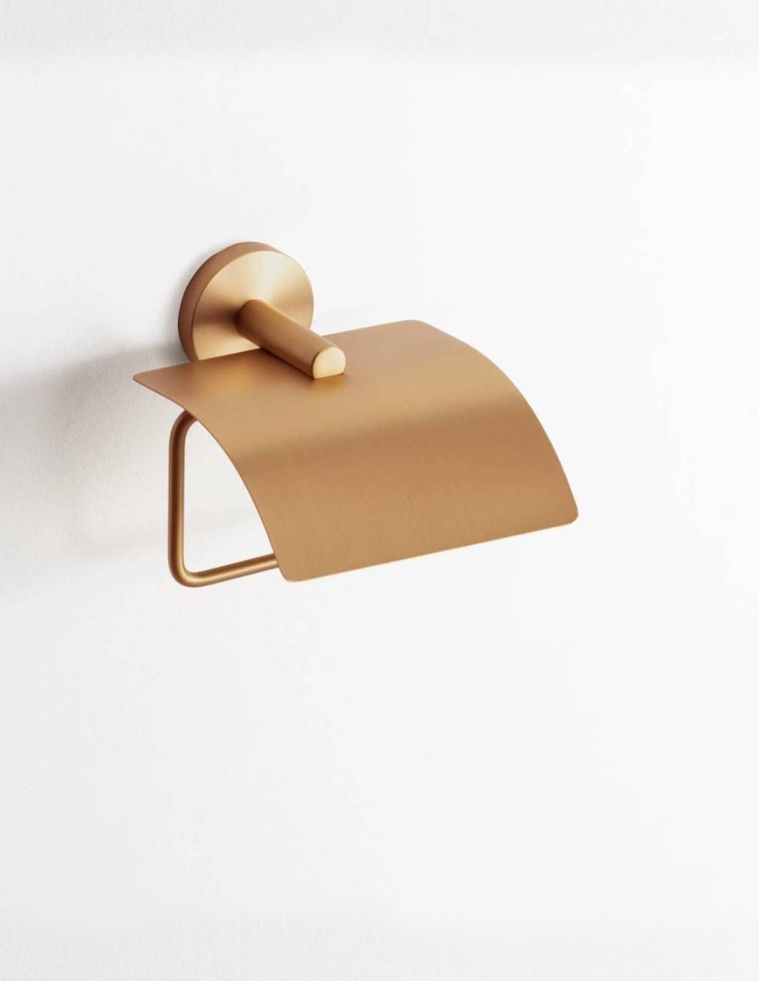 El portarrollos bronce con tapa - ECO de Manillons Torrent ofrece una solución elegante y funcional para el baño. Su diseño con tapa aporta discreción y protección, mientras que el acabado en bronce añade calidez y carácter al espacio.