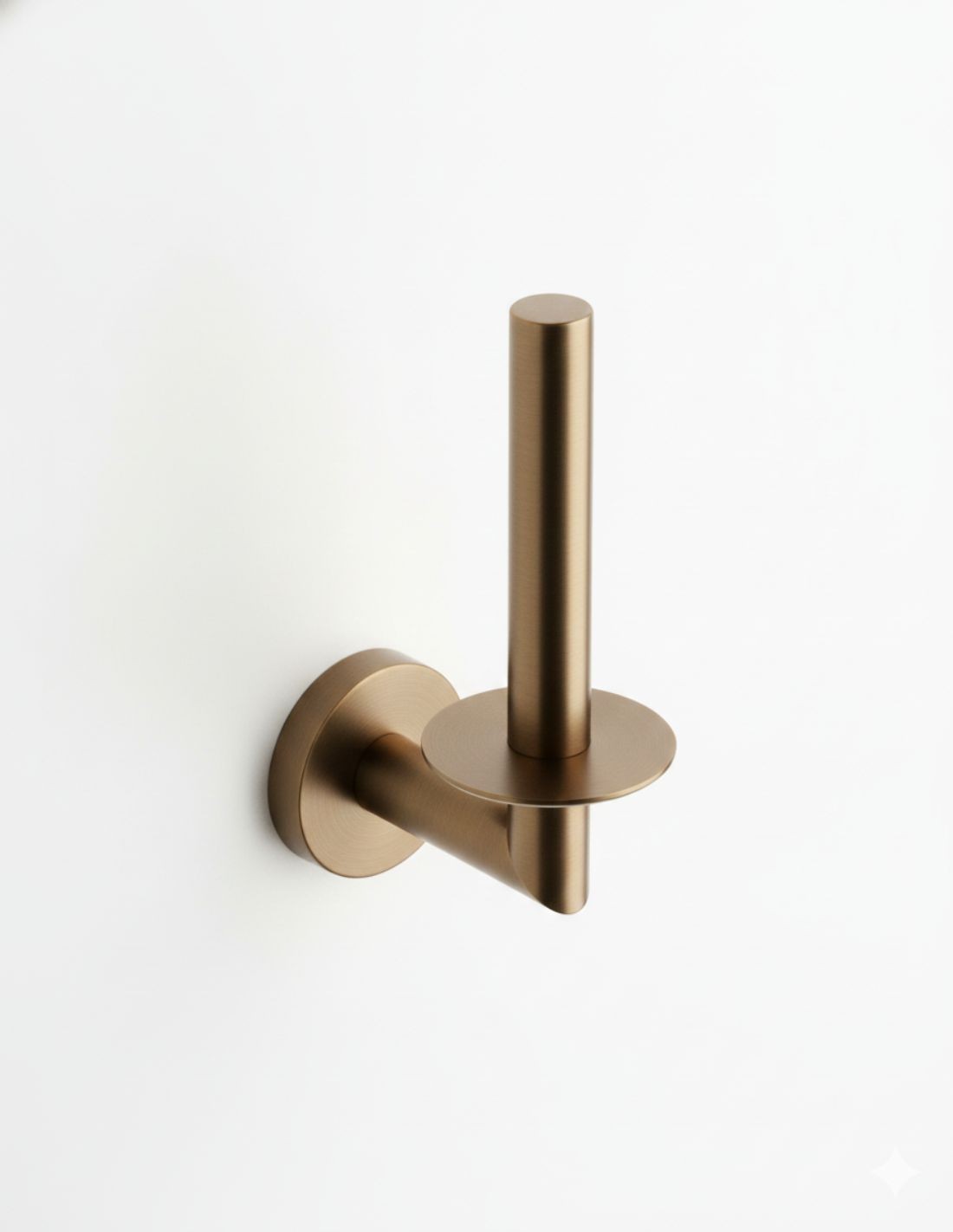 El Portarrollos vertical bronce - ECO de Manillons Torrent destaca por su diseño práctico y elegante, ideal para optimizar el espacio en baños con estilo. Su formato vertical permite un acceso cómodo al rollo, mientras que el acabado en bronce añade un toque de sofisticación y calidez. Fabricado con materiales duraderos, es una pieza funcional que combina estética clásica y compromiso sostenible.