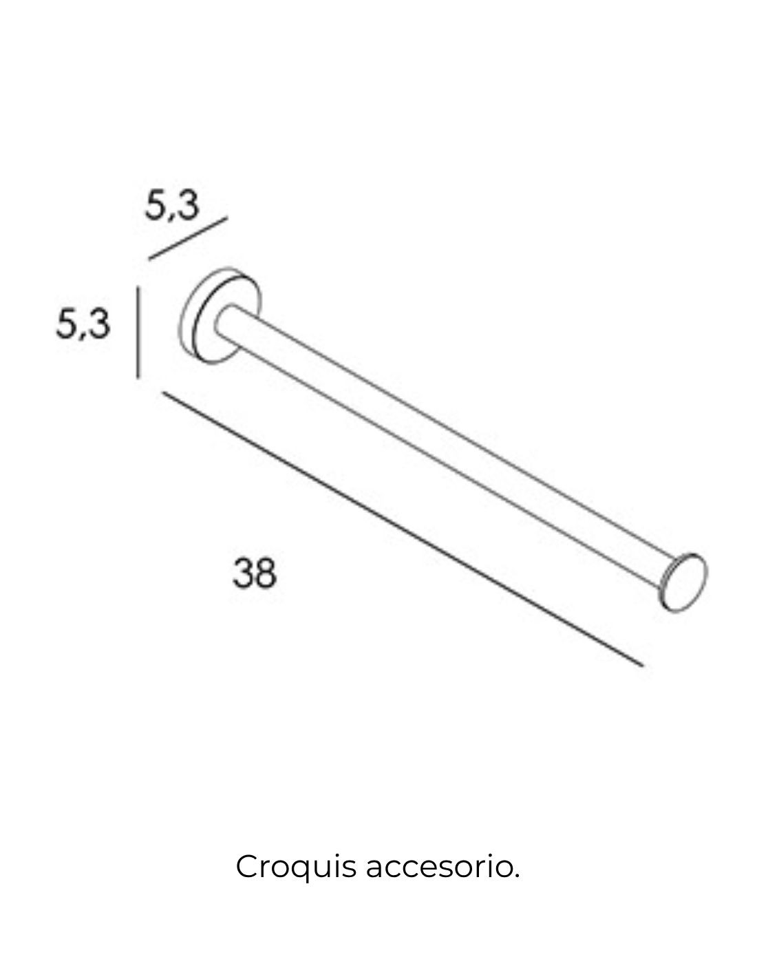 - Dimensiones toallero barra recto: 5.3 cm de alto, 5.3 cm de ancho y 38 cm de profundidad.