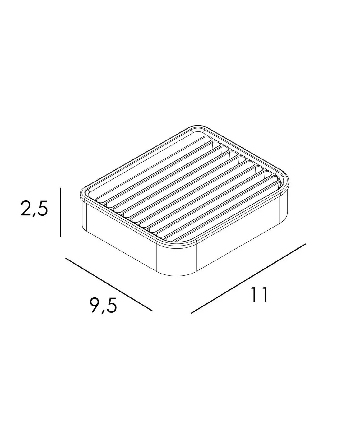 - Medidas jabonera de pared: 11 x 2,5 x 9,5 cms.