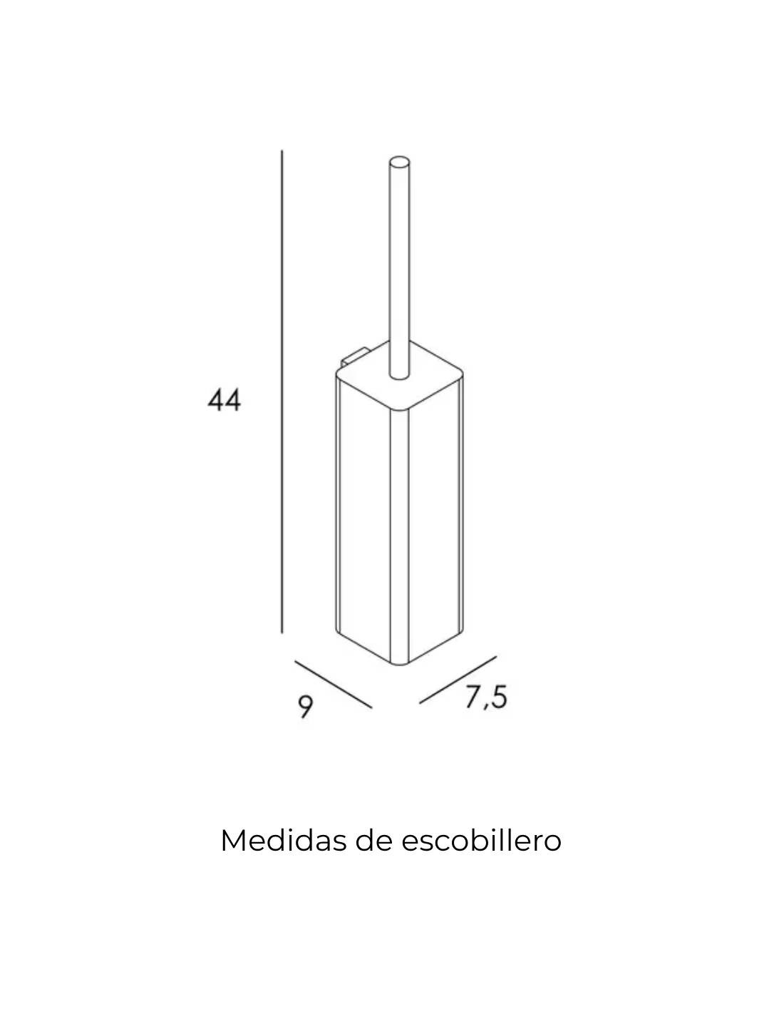 - Dimensiones escobillero de pared oro cepillado: 44 cm de alto, 7.5 cm de ancho y 7.5 cm de profundidad.