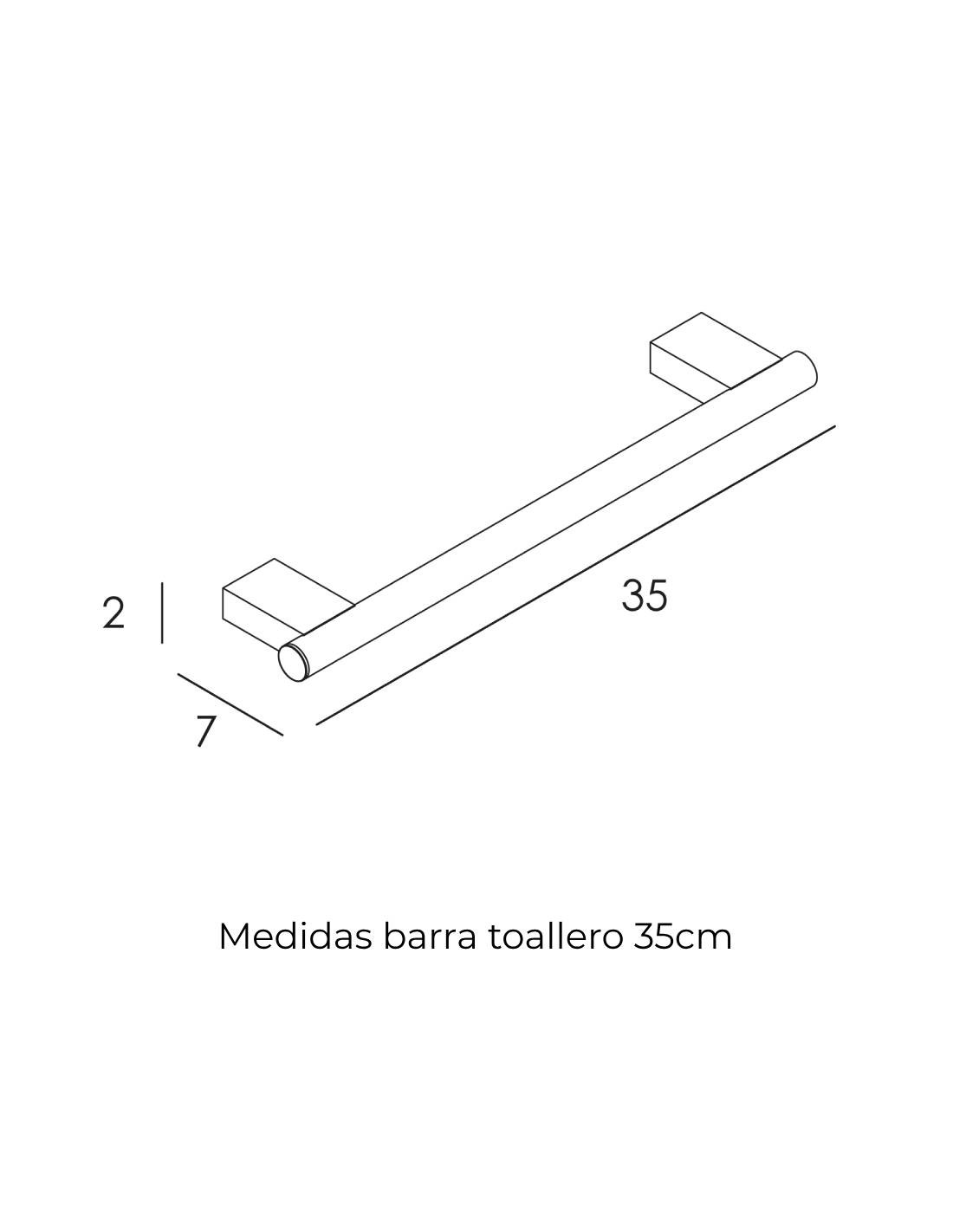 - Dimensiones barra toallero de baño cromo 35 cm: 35 cm ancho x 2 cm alto x 7 cm fondo.