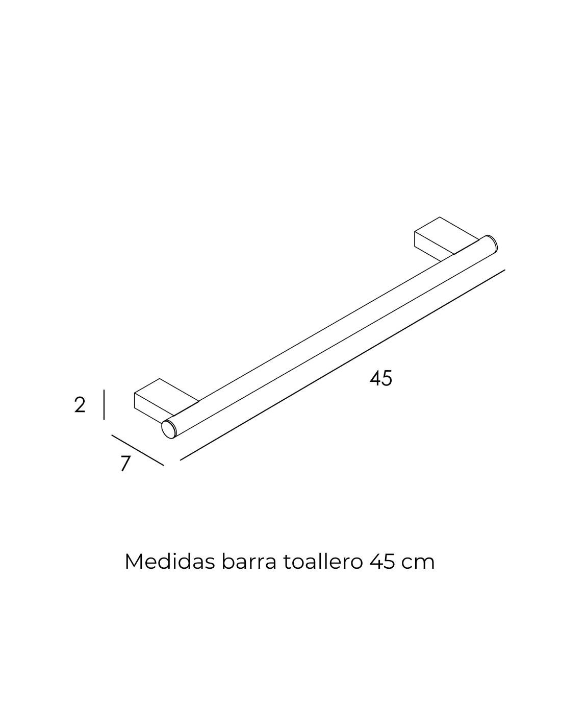 - Dimensiones barra toallero de baño bronce 45 cm: 45 cm ancho x 2 cm alto x 7 cm fondo.