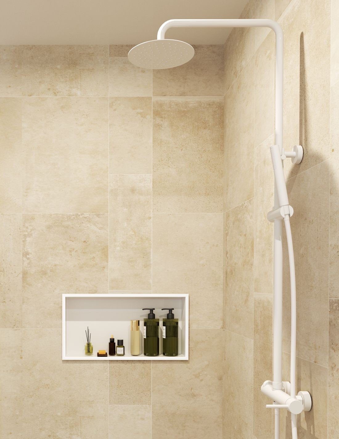 - Marca la ubicación deseada de la hornacina en la pared de la ducha, asegurándote de que esté a una altura y posición accesible.