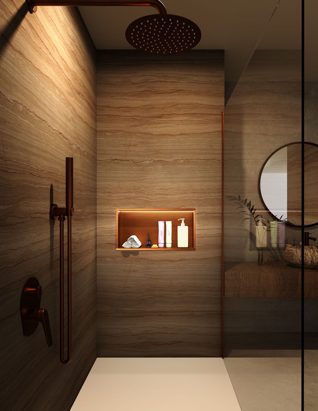 Hornacina rectangular LED oro rosa modelo OCEANIC de Medimex.