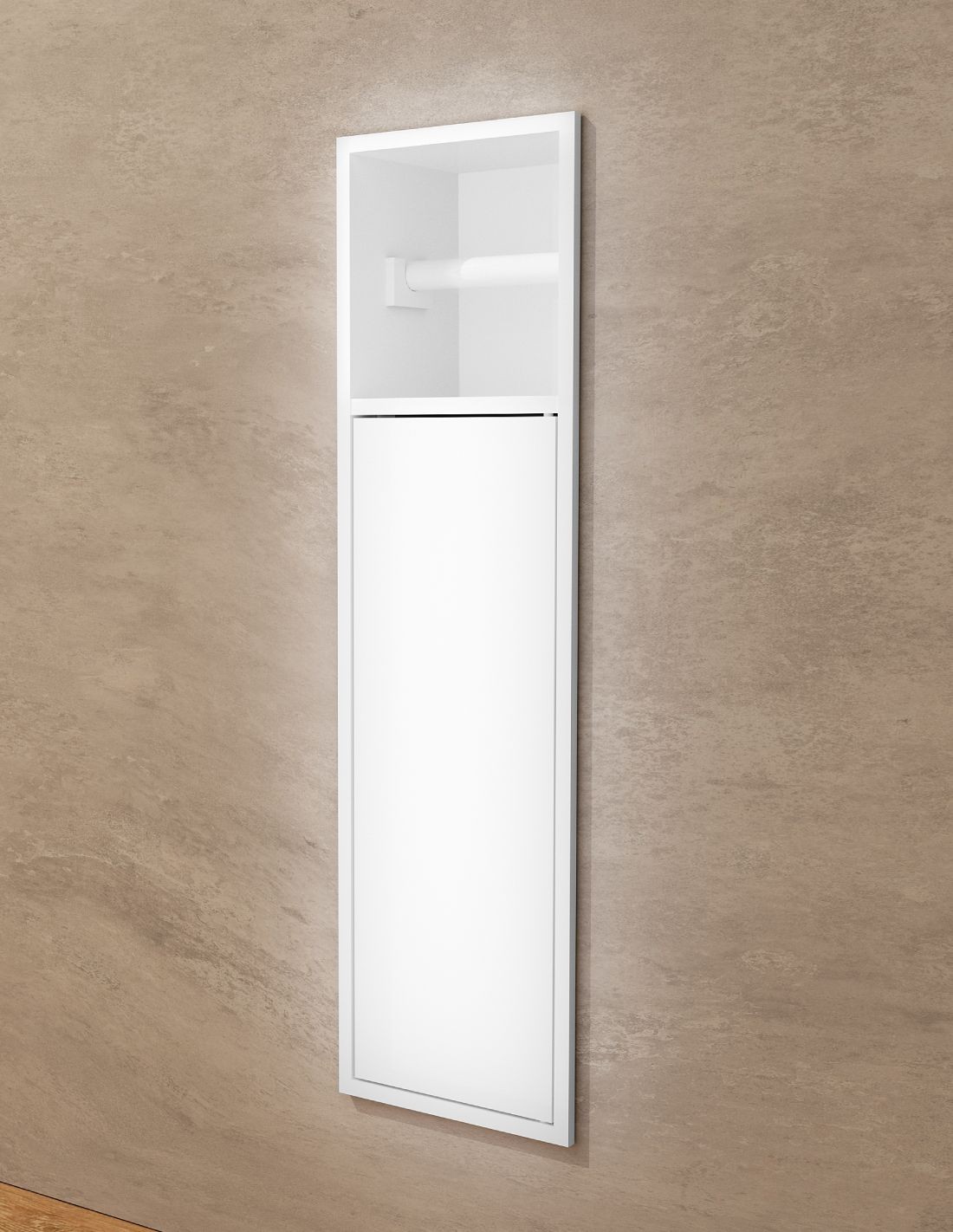 Este producto es ideal para su integración en las paredes sin necesidad de tener elementos colgados o salientes. El espacio de almacenamiento está diseñado para mantener todos sus elementos esenciales al alcance de la mano, ahorrándole tiempo para mantenerlo limpio y ordenado.