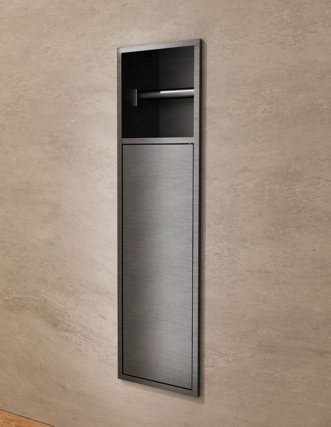 Este producto es ideal para su integración en las paredes sin necesidad de tener elementos colgados o salientes. El espacio de almacenamiento está diseñado para mantener todos sus elementos esenciales al alcance de la mano, ahorrándole tiempo para mantenerlo limpio y ordenado.