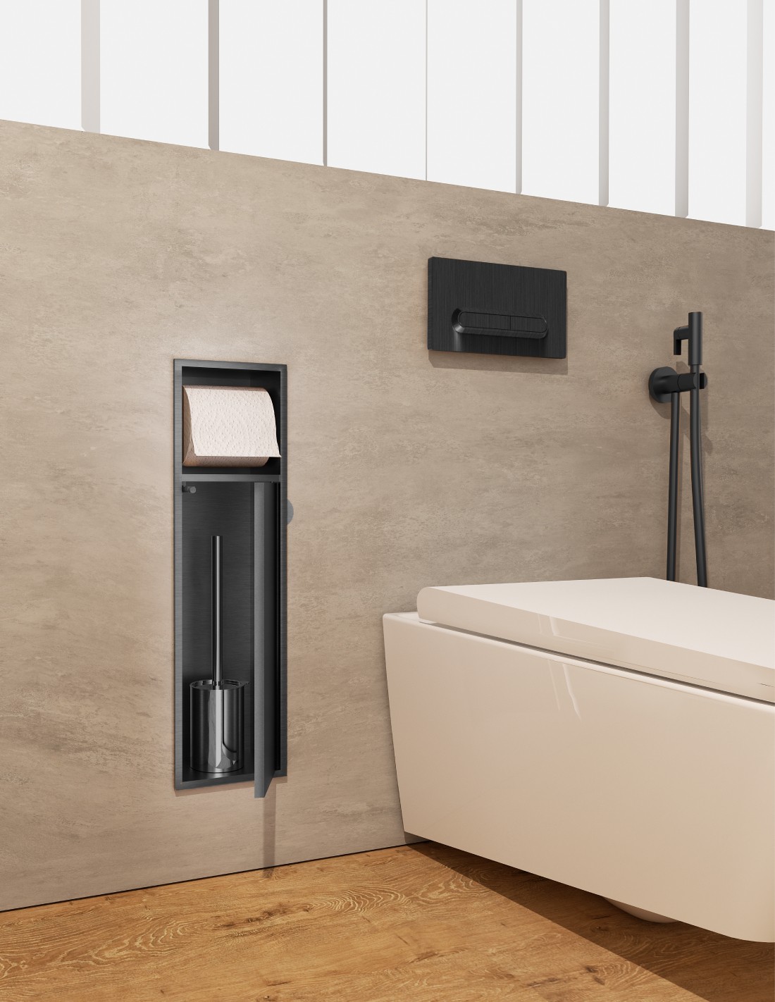 Hornacina portarrollos y escobillero black gun metal - EGEAN de Medimex