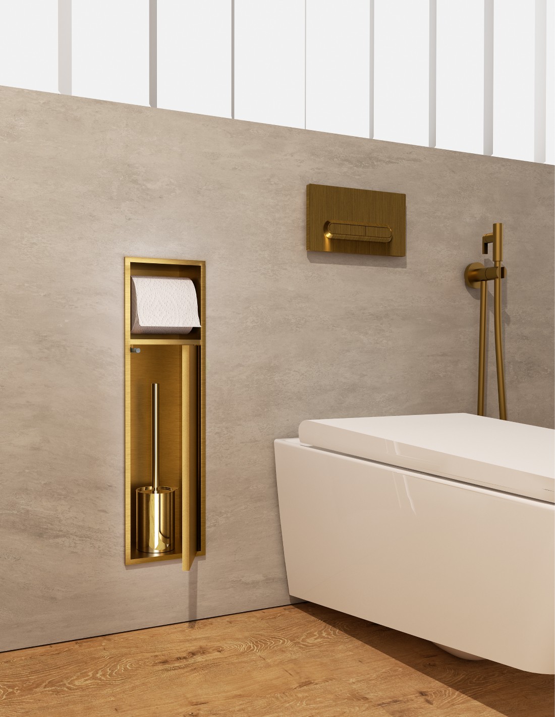 Hornacina portarrollos y escobillero oro modelo EGEAN de Medimex.