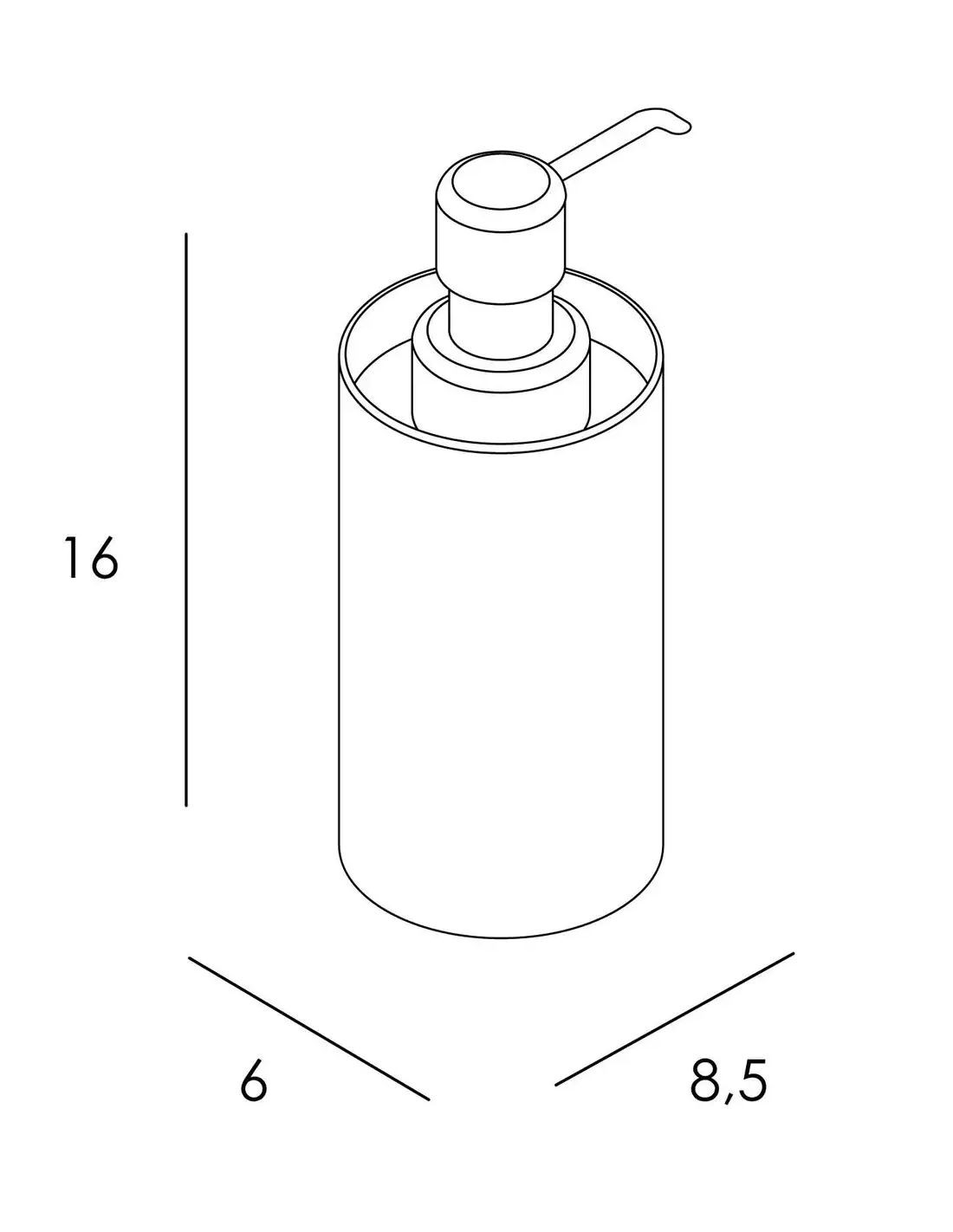 - Dimensiones del dosificador sobremesa cromo: 16 cm de alto, 8.5 cm de ancho y 6 cm de profundidad.