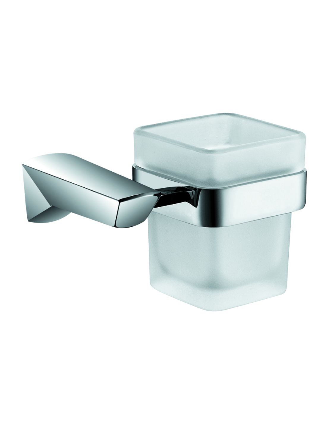 Este accesorio destaca por la combinación equilibrada de su soporte circular cromado y su vaso de cristal, una mezcla de materiales que evoca limpieza y sofisticación en cada detalle.