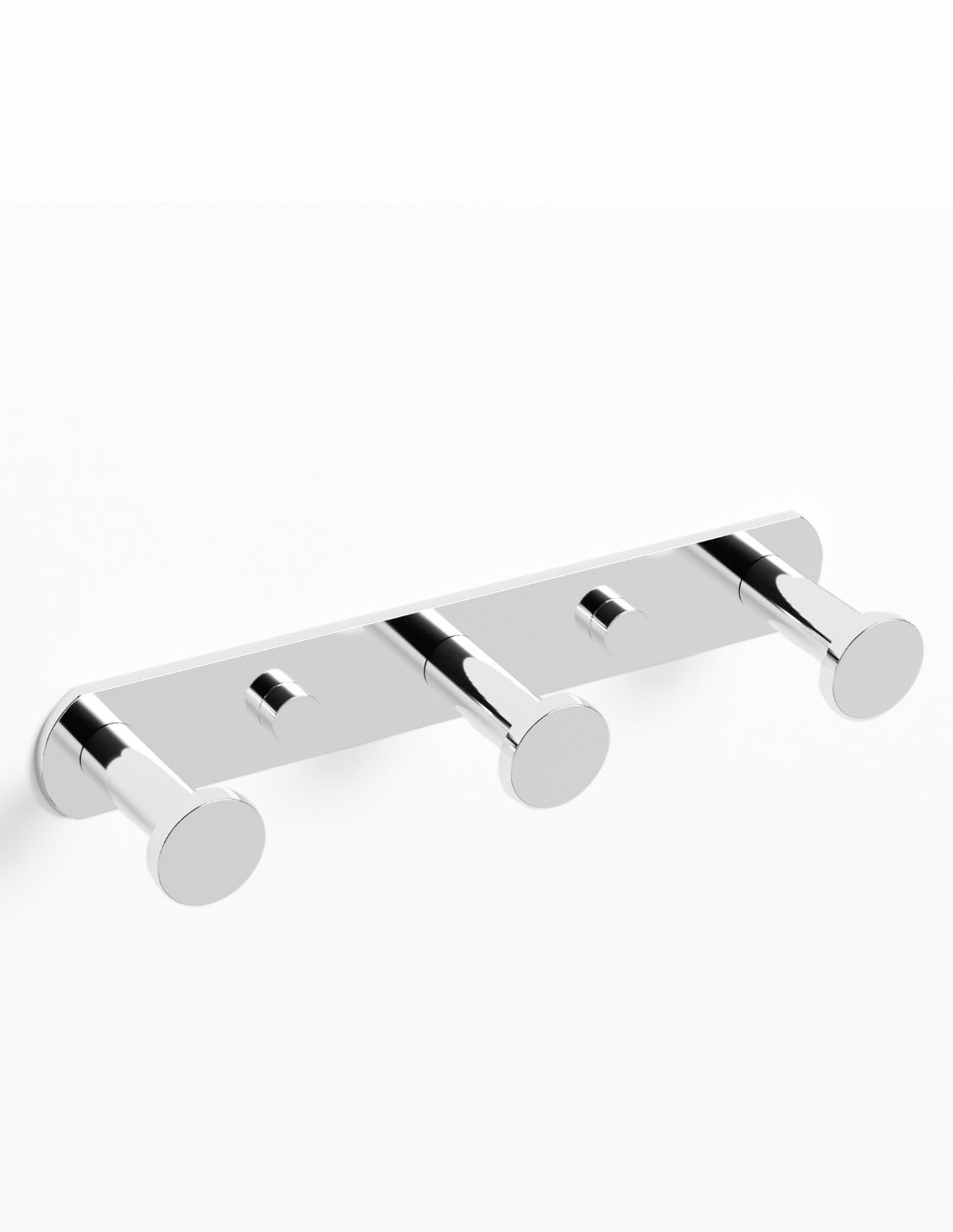 La Percha triple cromo/níquel - Round de GME es la pieza clave para la organización en baños familiares o compartidos. Su estructura robusta permite colgar hasta tres elementos (toallas, albornoces o complementos) de forma ordenada y accesible, manteniendo siempre la estética circular y equilibrada que define a esta serie.
