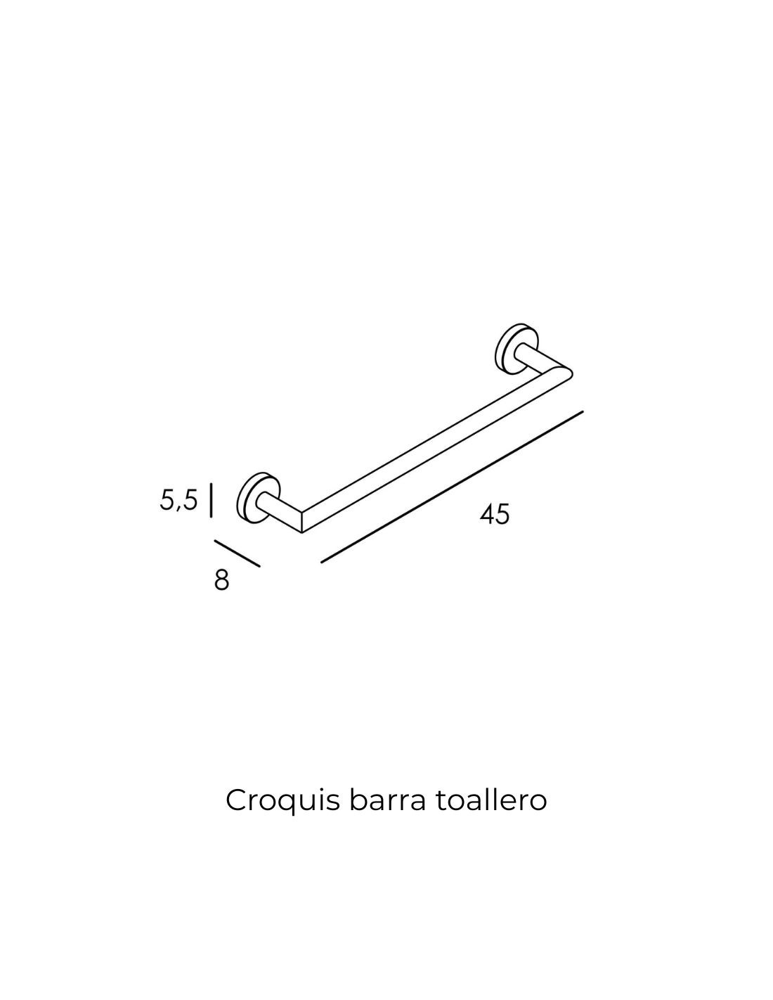 - Dimensiones del toallero: 5.5 x 8 x 45 cm