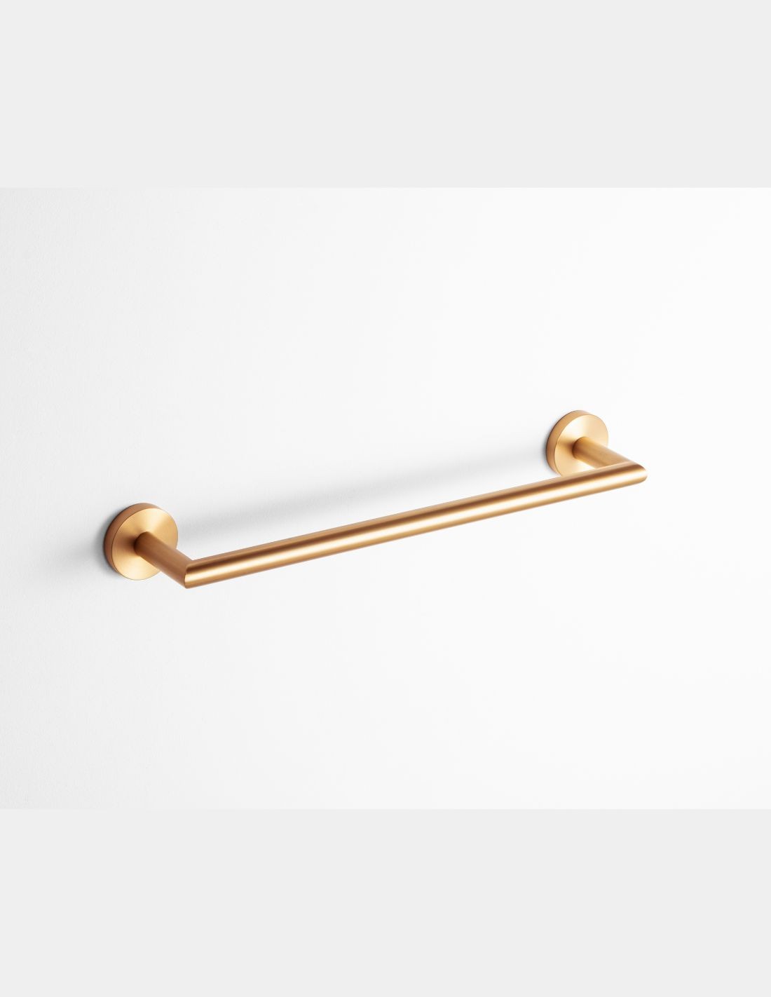 El Toallero 45 mm oro/cobre - Round de GME es un accesorio esencial que combina una longitud funcional con la estética minimalista de líneas curvas. Su tamaño es el más versátil de la gama, permitiendo colgar toallas de lavabo con total comodidad sin ocupar un espacio excesivo en la pared.