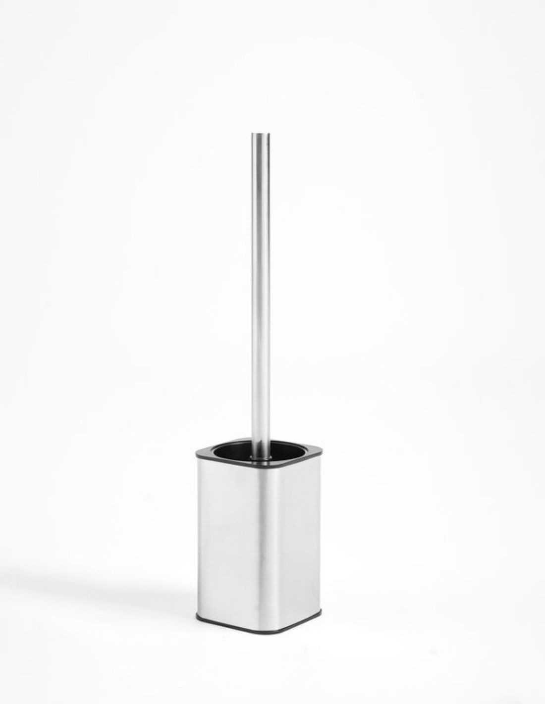 El Escobillero suelo cromo/níquel - Quadra de GME es un accesorio autoportante que destaca por su robustez y su diseño de líneas rectas. Su estructura de sección cuadrada ofrece una estética arquitectónica que oculta el cepillo con total elegancia. Fabricado en Acero Inox 304, garantiza una resistencia máxima frente a la humedad y el uso de productos de limpieza en la zona del sanitario.