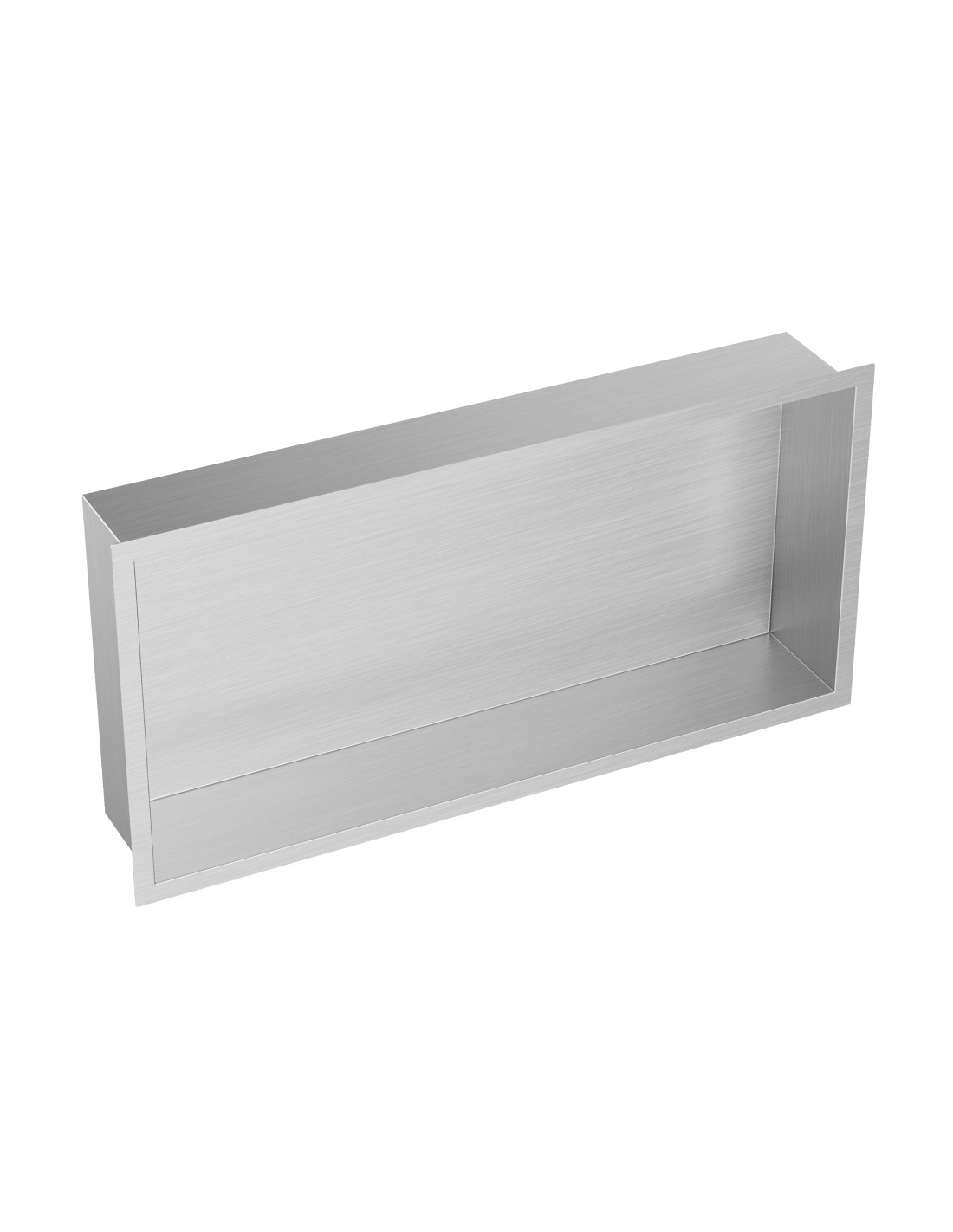 Dale un toque moderno y actual a tu baño colocando nuestra hornacina empotrada rectangular de acero inoxidable. Es un estante perfecto para guardar jabones, champús, maquinillas de afeitar y otros artículos de ducha y baño.