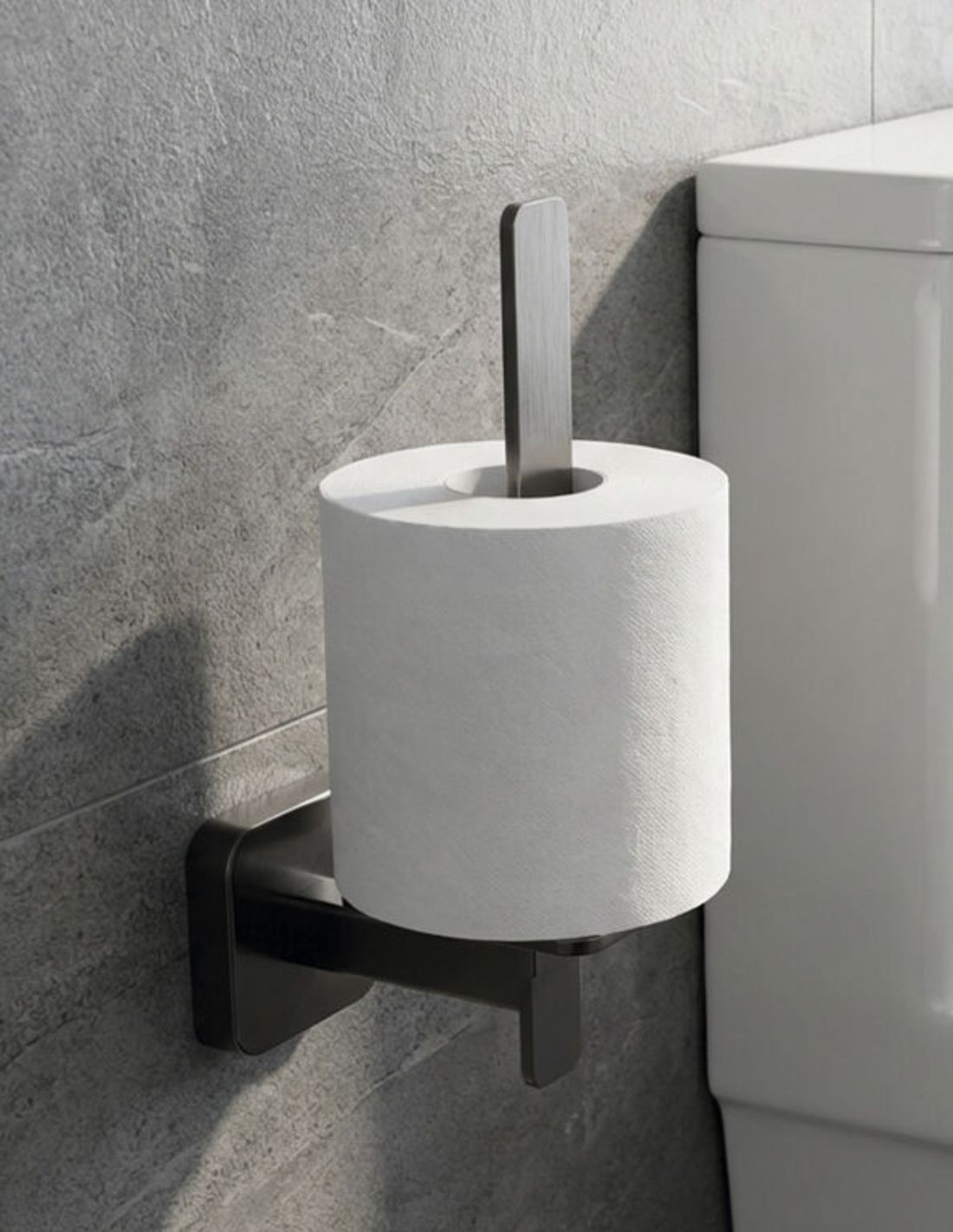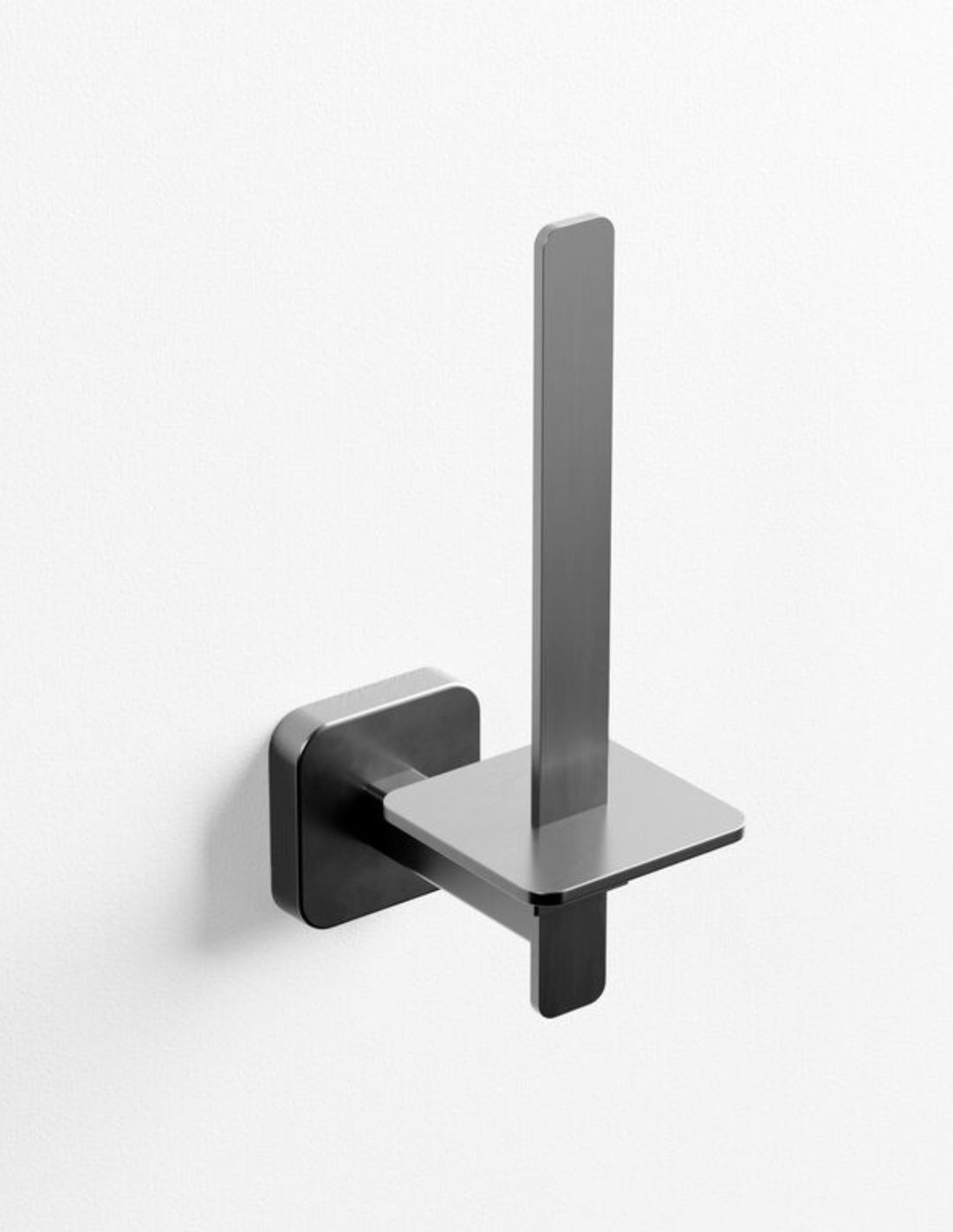 El Portarrollos vertical negro/titanio - Quadra de GME es el accesorio perfecto para optimizar el espacio con un toque moderno y audaz. Su diseño en columna de líneas rectas permite utilizarlo como portarrollos principal en espacios estrechos o como soporte de reserva para un segundo rollo. Fabricado en Acero Inox 304, ofrece una presencia robusta y minimalista que define a toda la serie.