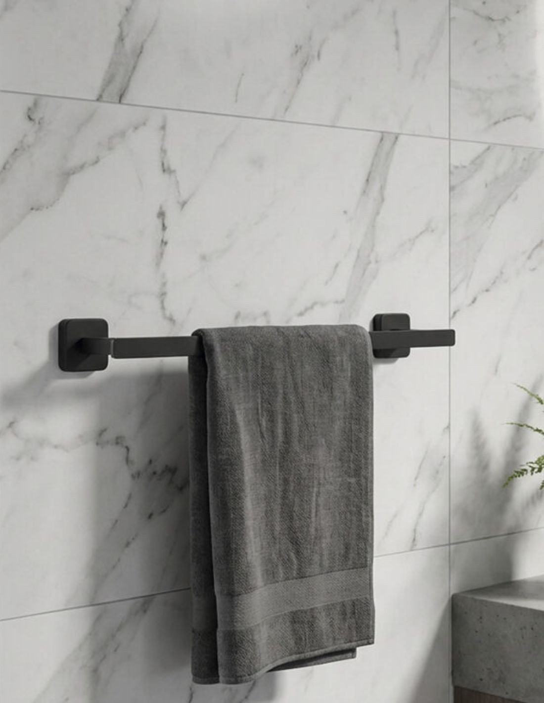 Al igual que el resto de la serie Quadra, este toallero cuenta con un sistema de fijación dual. Permite su montaje mediante tornillería tradicional o adhesivo de alta resistencia para proteger tus azulejos. Disponemos de la colección completa para un diseño integral y coordinado.