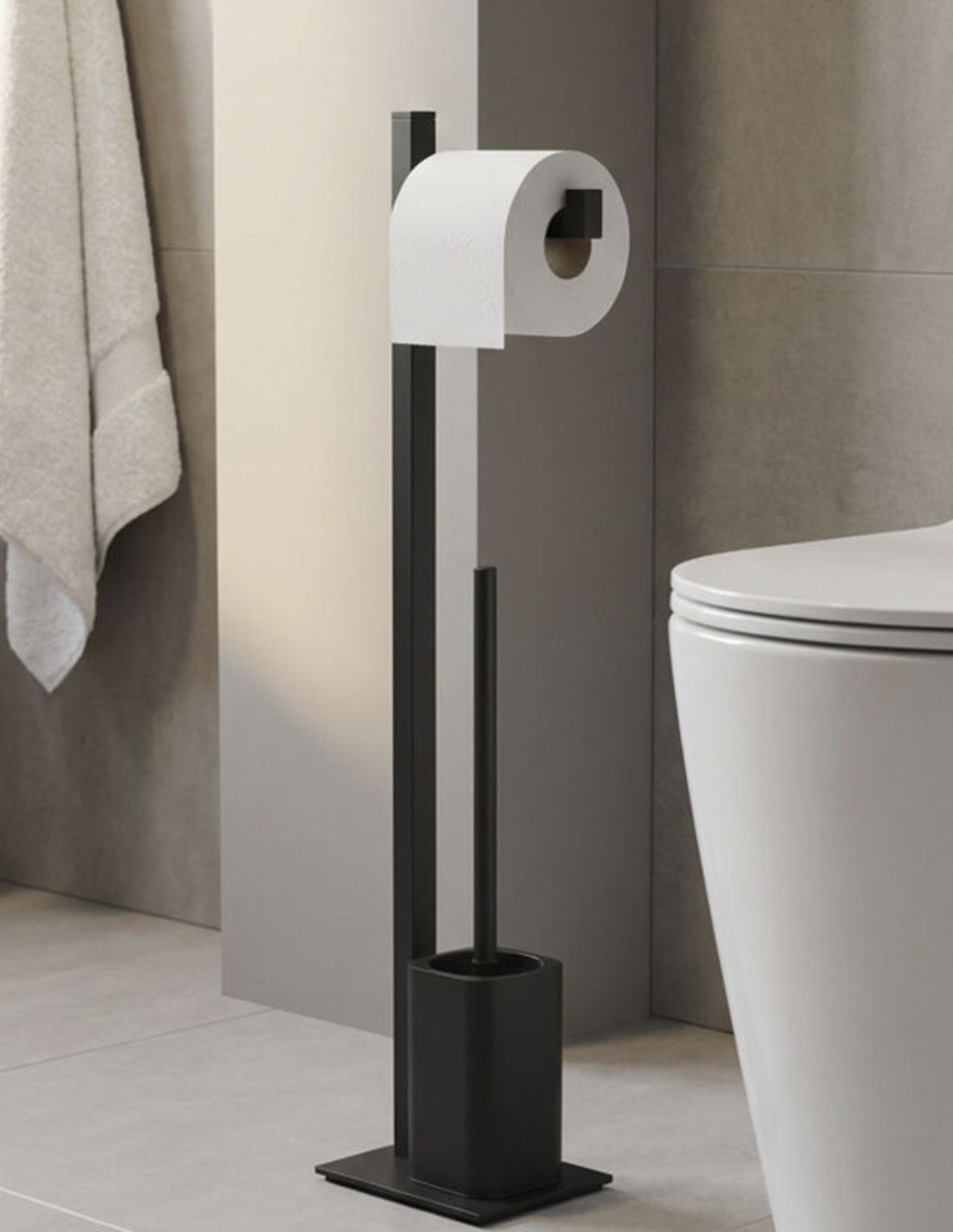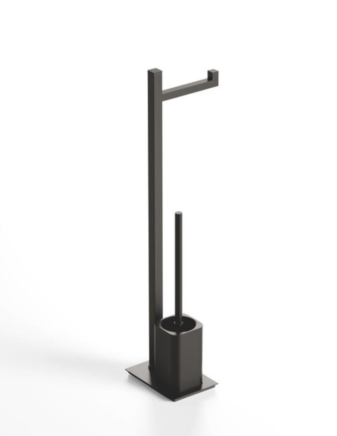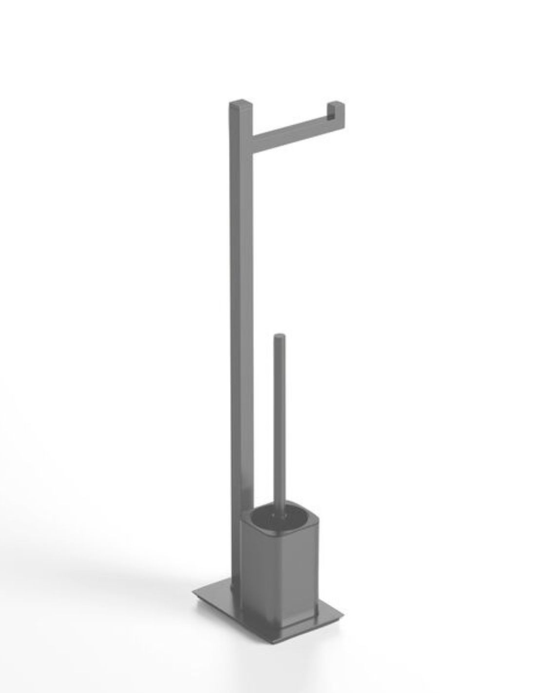 El Escobillero auxiliar negro/titanio - Quadra de GME es un accesorio autoportante que destaca por su imponente diseño geométrico. Su estructura de sección cuadrada y líneas puras ofrece una estabilidad superior, ocultando el cepillo de forma elegante y discreta. Al estar fabricado en Acero Inox 304, garantiza una resistencia total a la corrosión y a los productos de limpieza, manteniendo su estética técnica e industrial a lo largo del tiempo.