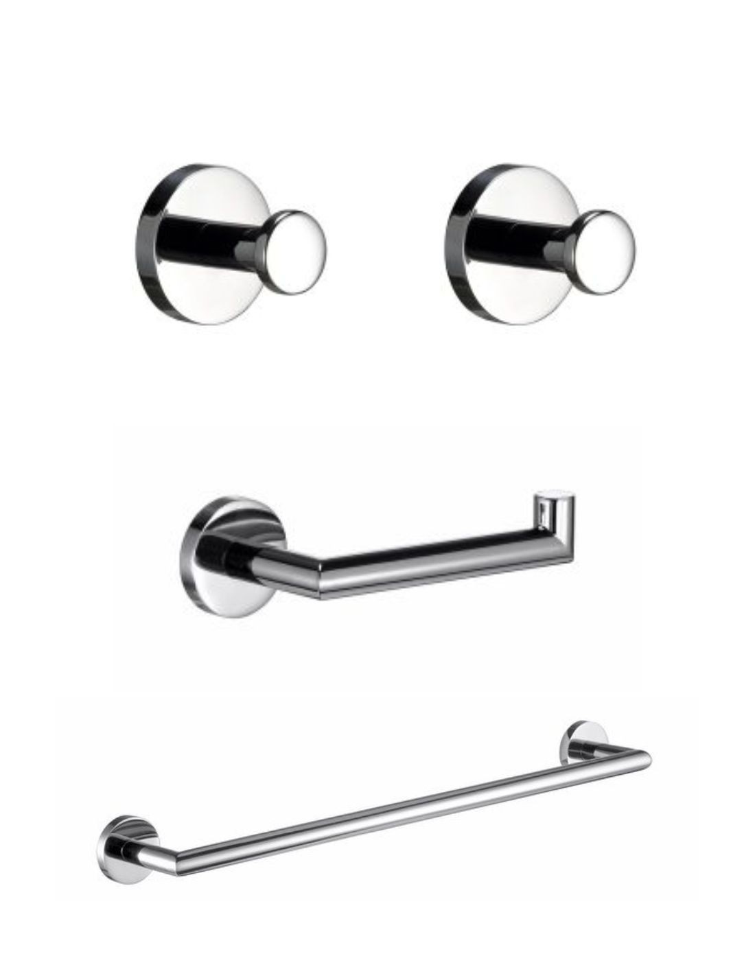 El Set 4 piezas - cromo Eco de Manillons Torrent se define por su equilibrio entre estética y practicidad. Este conjunto de 4 piezas ha sido seleccionado para cubrir los puntos clave de organización en el baño, utilizando líneas circulares y superficies cromadas que aportan una gran luminosidad y sensación de limpieza. Cada elemento está diseñado para soportar el uso diario intensivo, manteniendo una uniformidad estética que eleva el diseño general de la estancia.