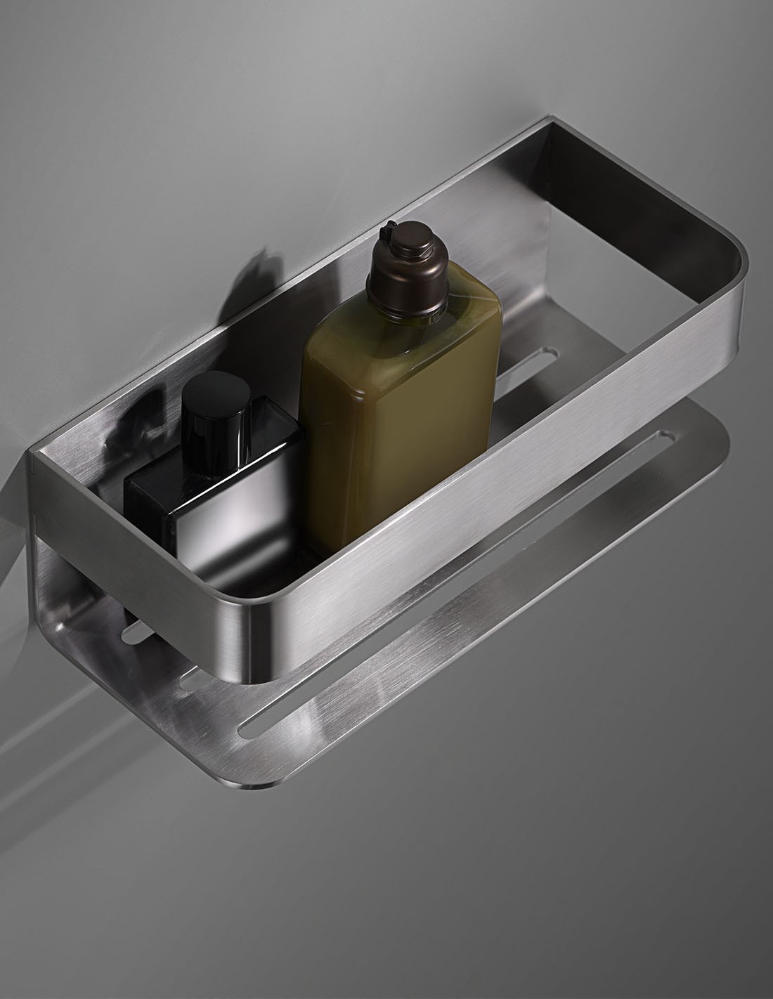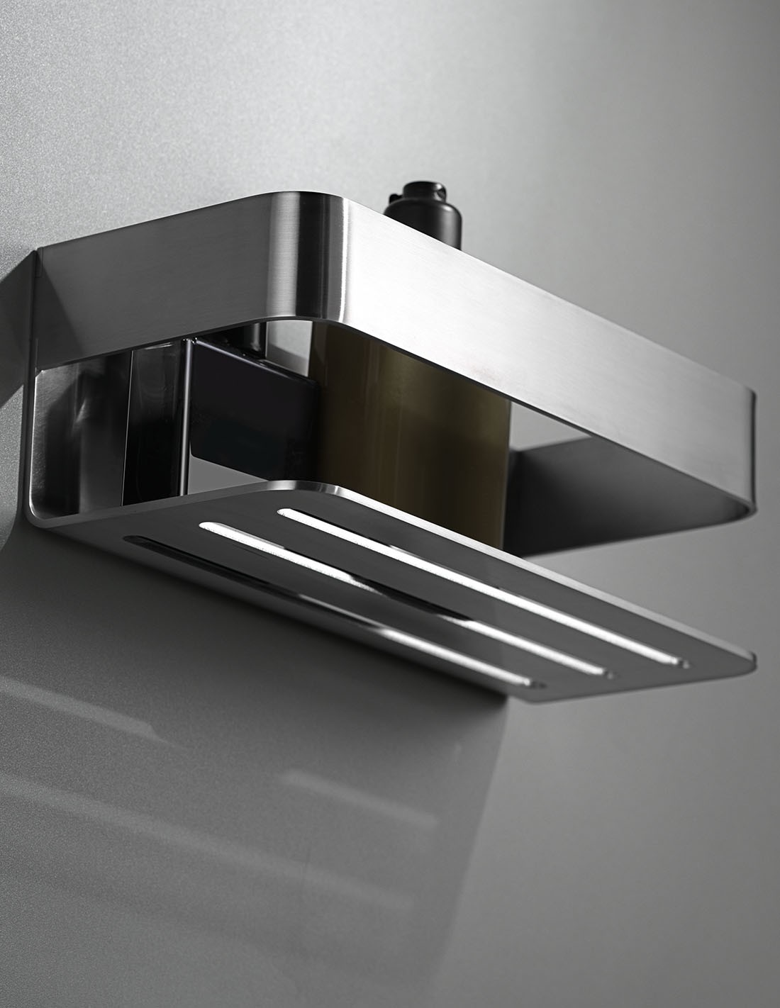 Fabricada para soportar el entorno de alta humedad, la repisa Mayura se ofrece en dos acabados metálicos que complementan cualquier estilo de grifería: el clásico y brillante Cromo o el moderno y discreto Níquel Cepillado.