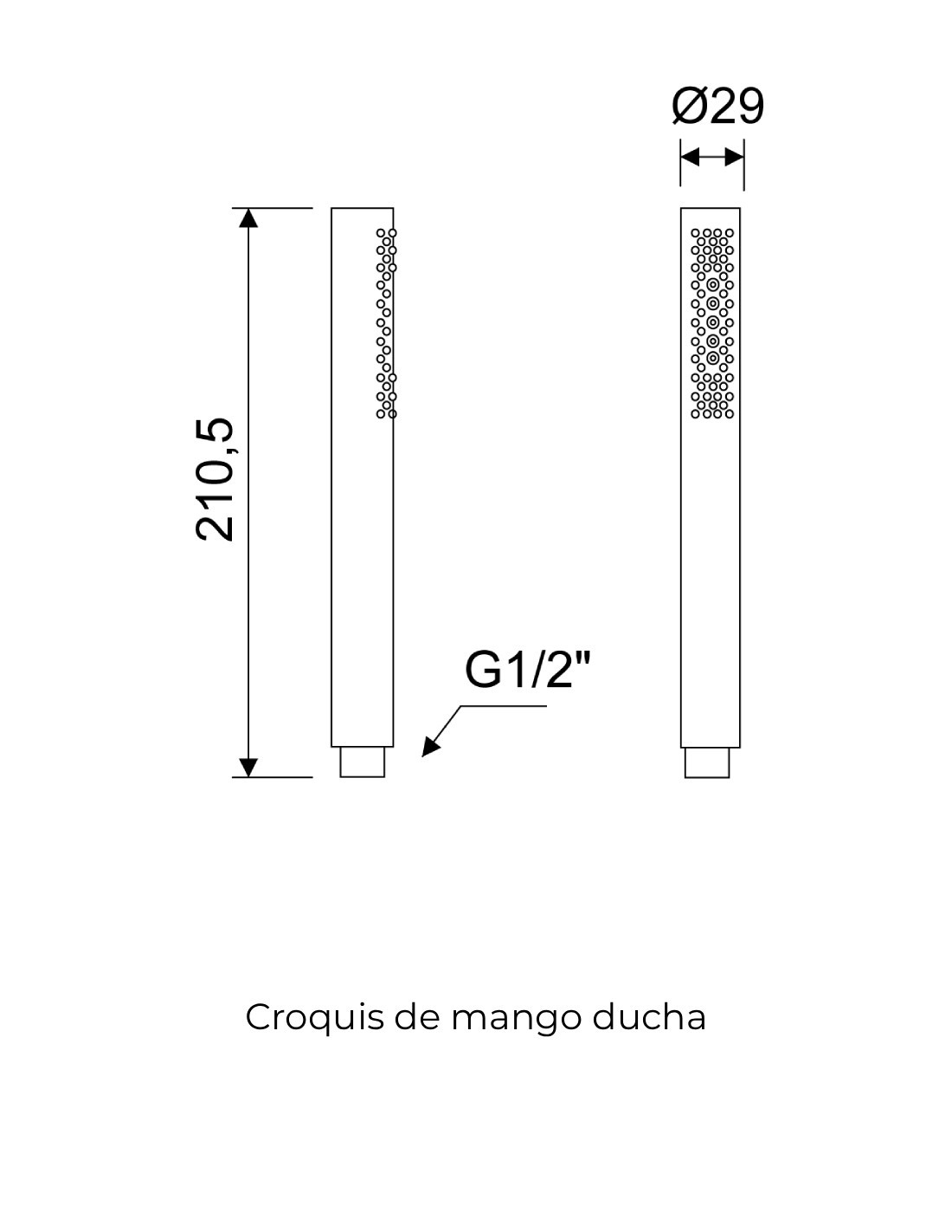 Fabricado en ABS cromado de alta calidad, este mango es ligero, duradero y resistente a la humedad y la corrosión. Su forma alargada permite una salida de agua uniforme y envolvente, ideal para disfrutar de una ducha relajante y confortable.