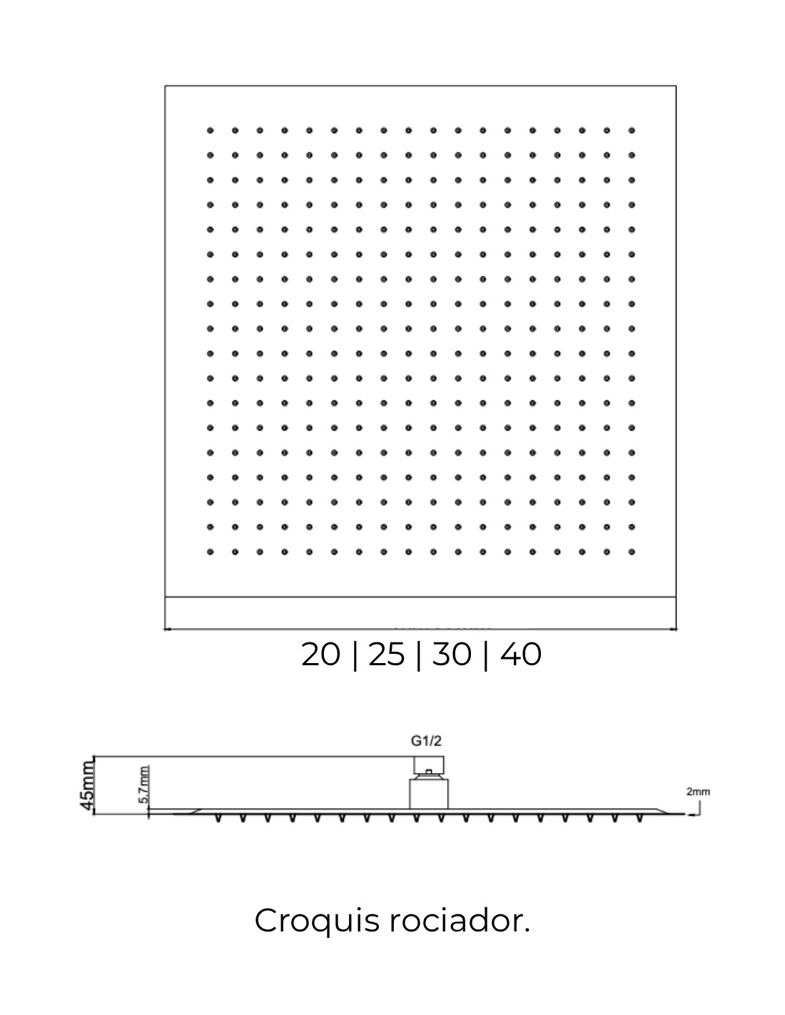 Rociador cuadrado - 20x20 , 25x25 , 30x30 ó 40x40 cm. de Imex.