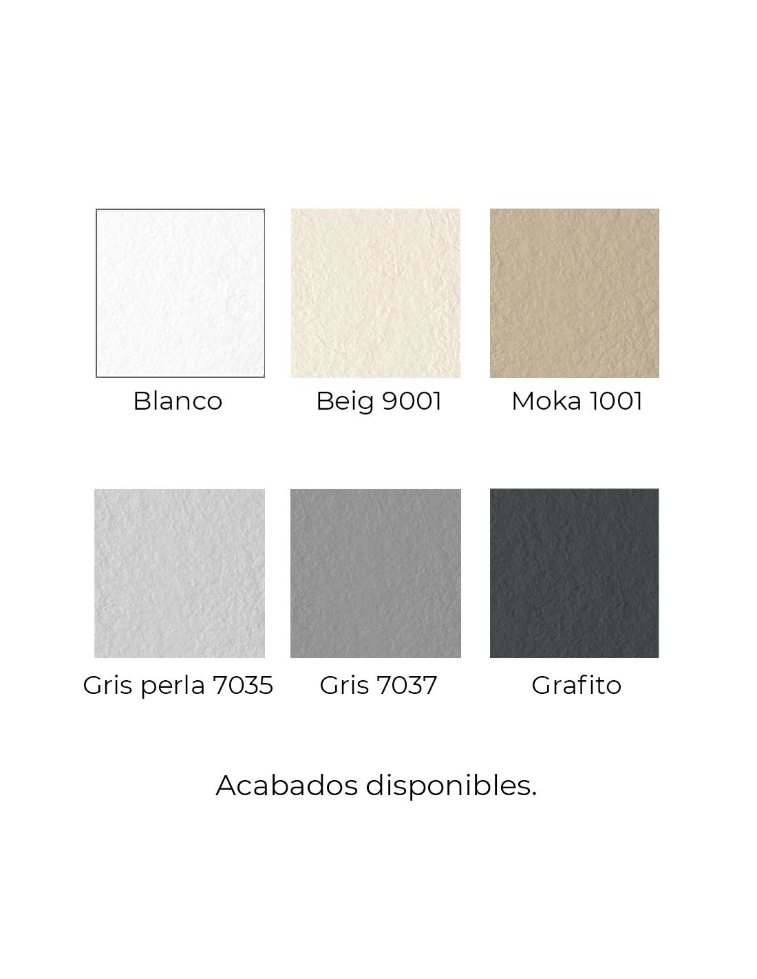- Acabados: BLANCO, BEIGE, MOKA, GRIS PERLA, GRIS 7037 Y GRAFITO.