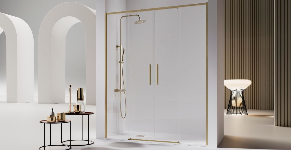 Mampara dorada frontal - 2 hojas fijas y 2 correderas DELTA de Kassandra