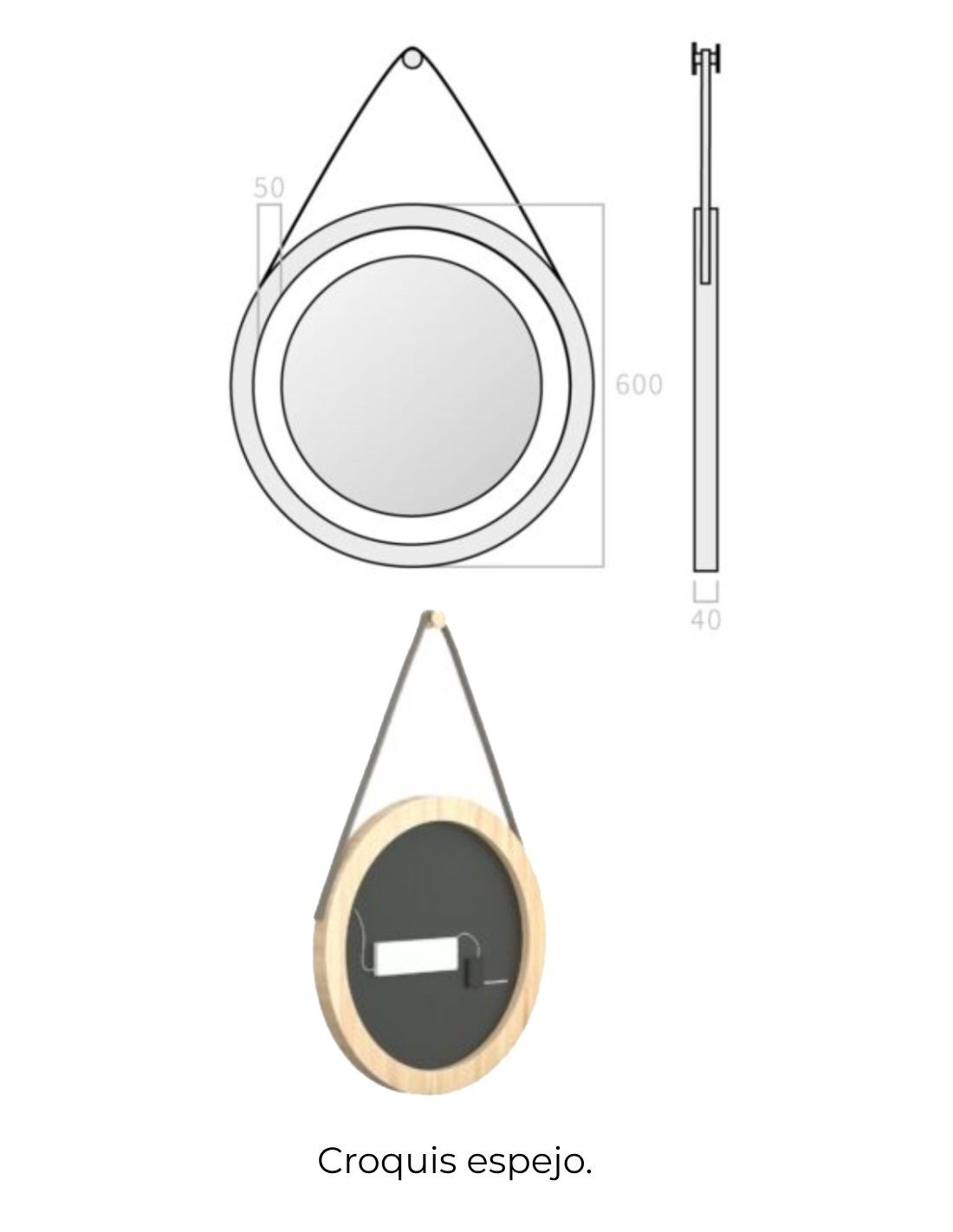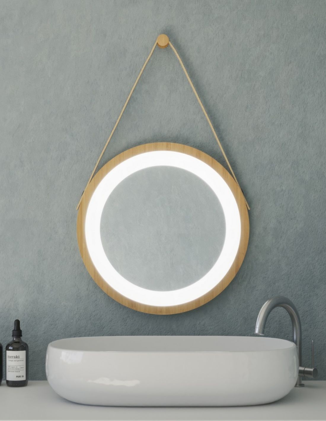 Espejo redondo con luz led modelo MADERA de BathDecor. ¡Dale a tu baño un toque elegante y sofisticado con nuestro modelo MADERA!