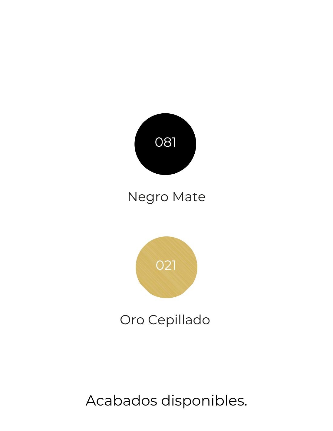 - Acabados disponibles: negro mate y oro cepillado.