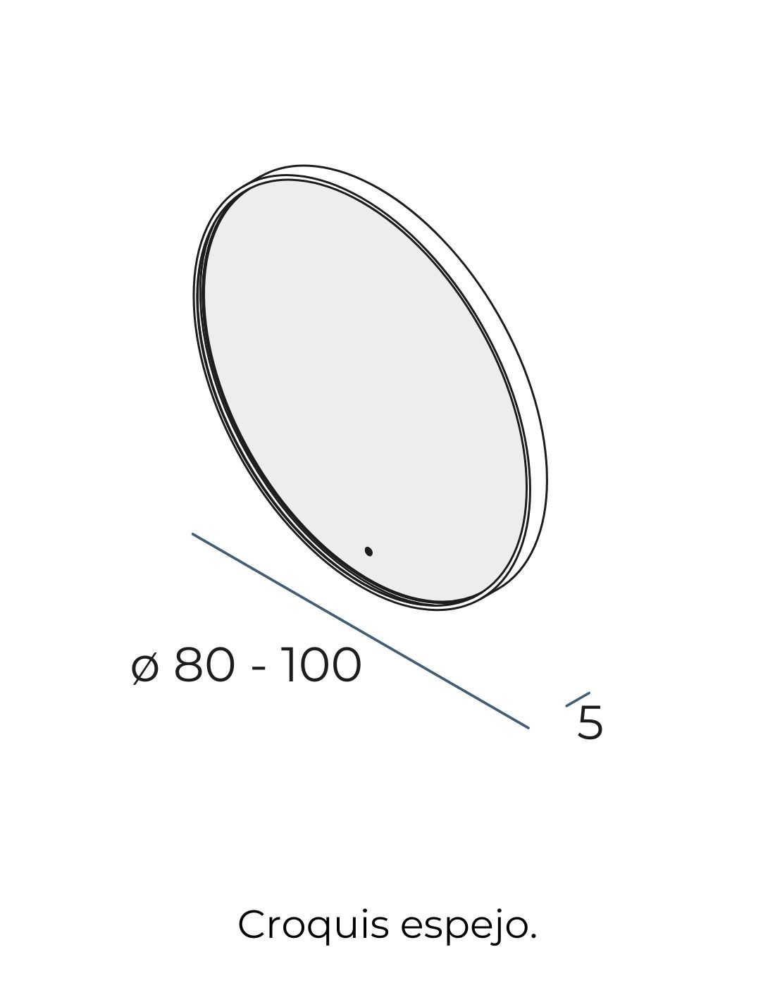 Características principales del espejo circular con marco y luz Bolero de Manillons Torrent: