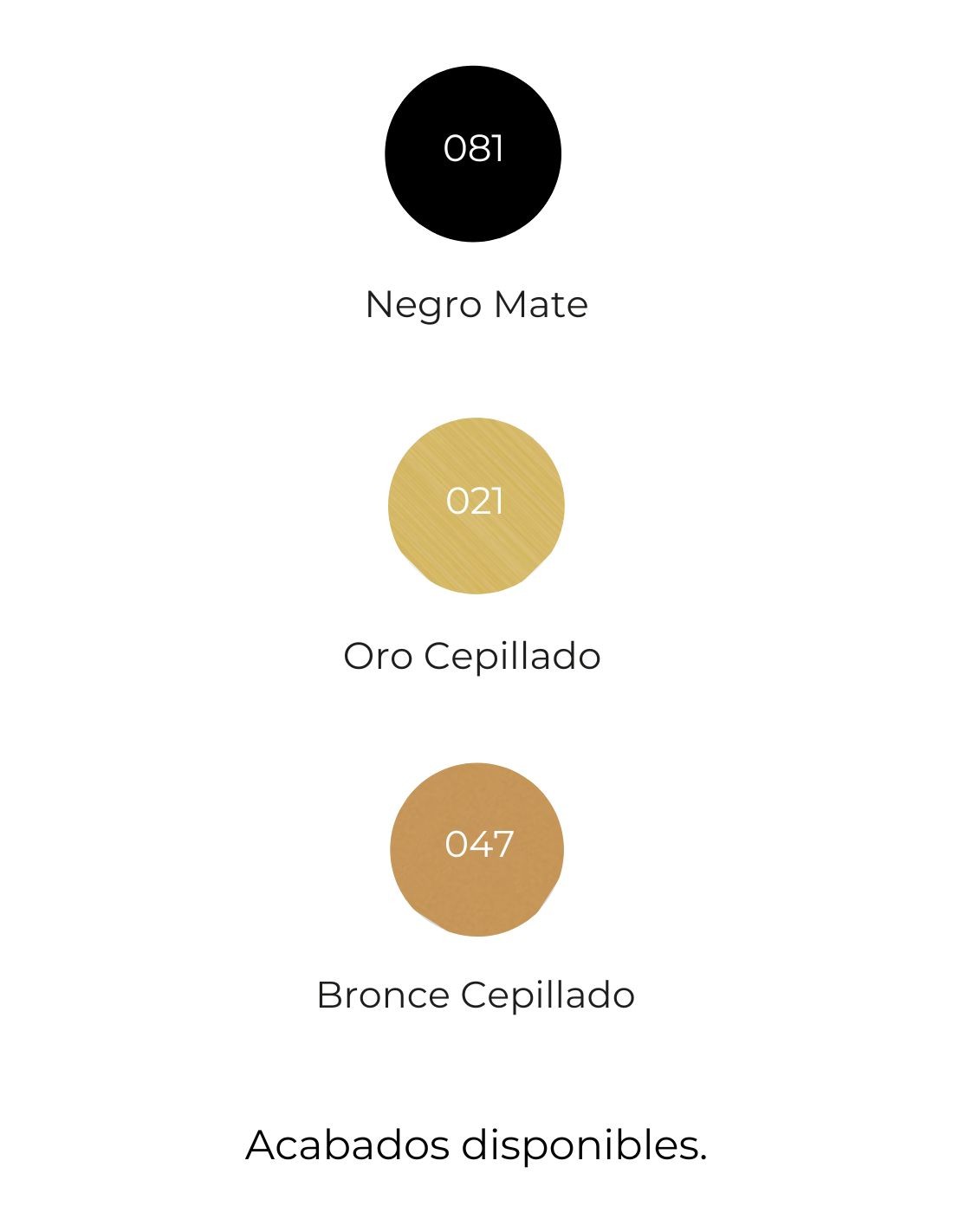 Acabados disponibles: oro cepillado, negro mate y bronce cepillado.