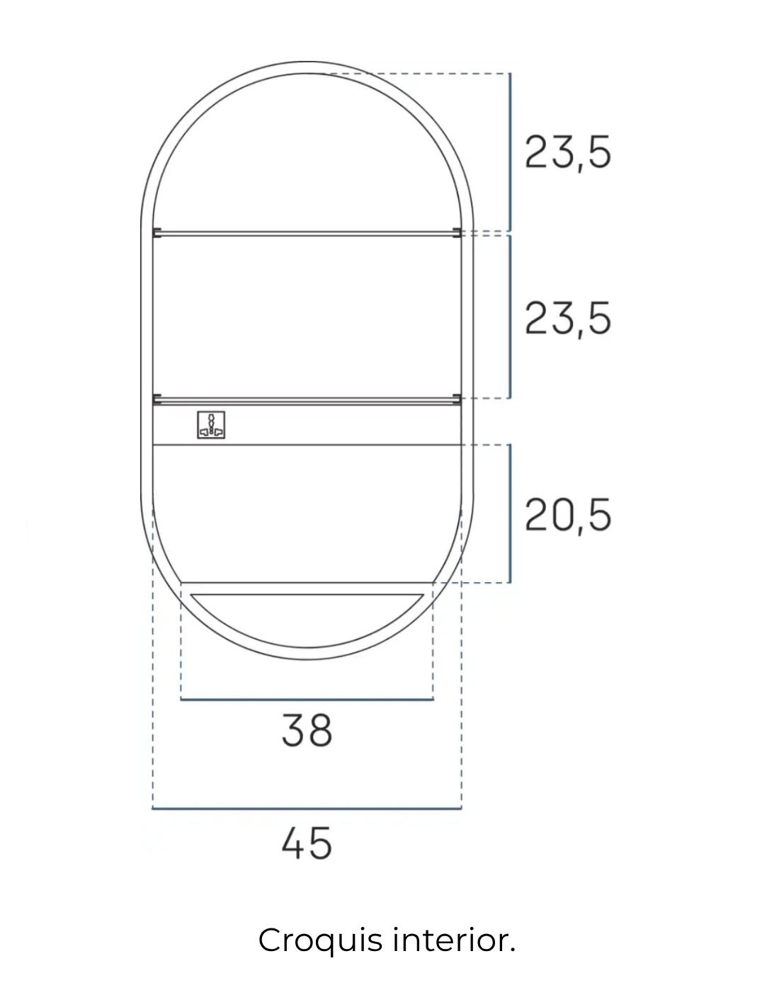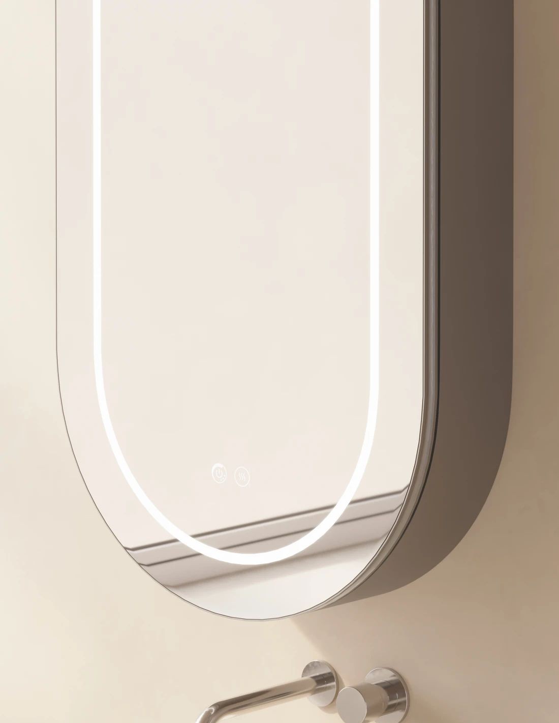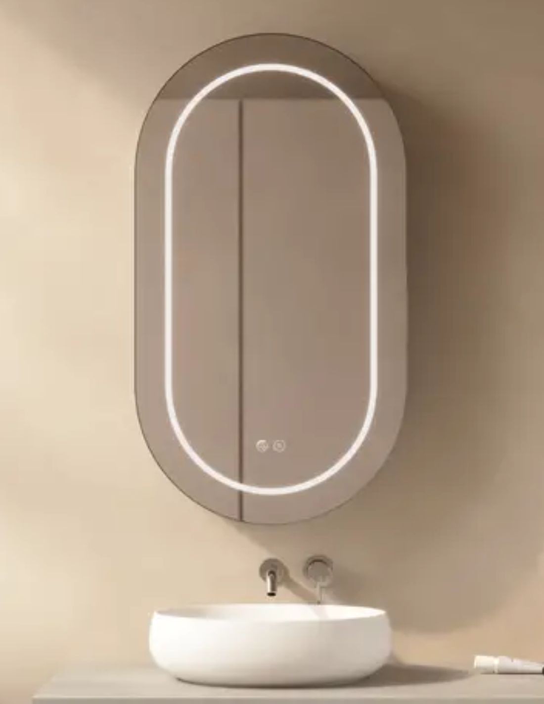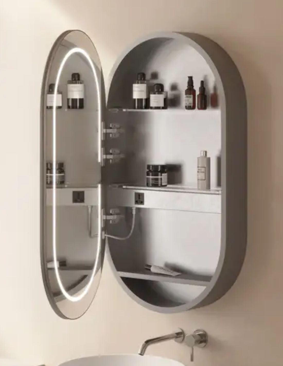 - Espejo / Camerino ovalado con forma de cápsula.