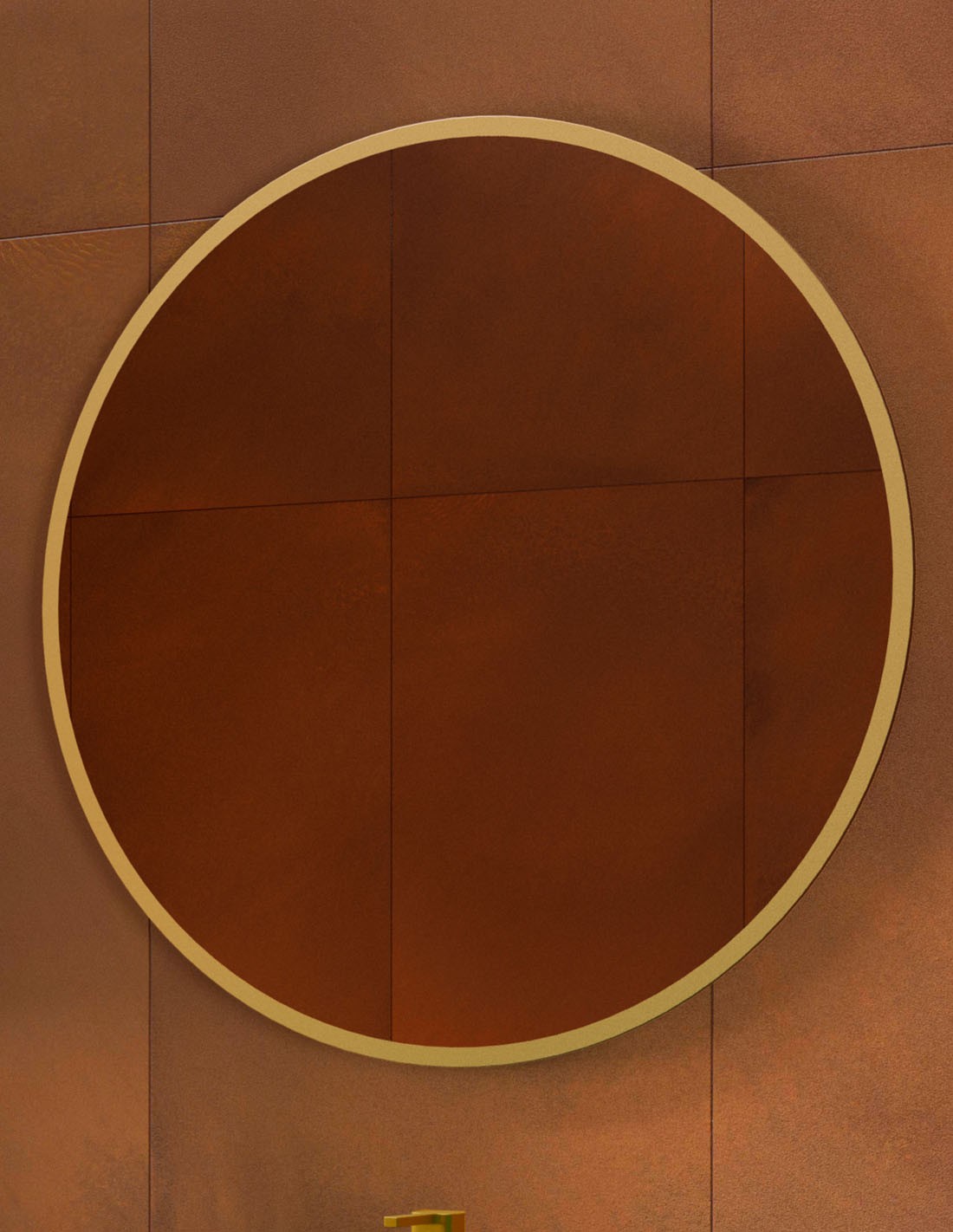 Dale a tu cuarto de baño un toque moderno y sofisticado gracias a nuestro espejo circular dorado modelo REDONDO de Coycama.