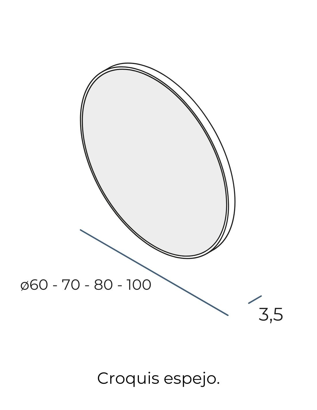 Espejo redondo sin luz con marco croquis