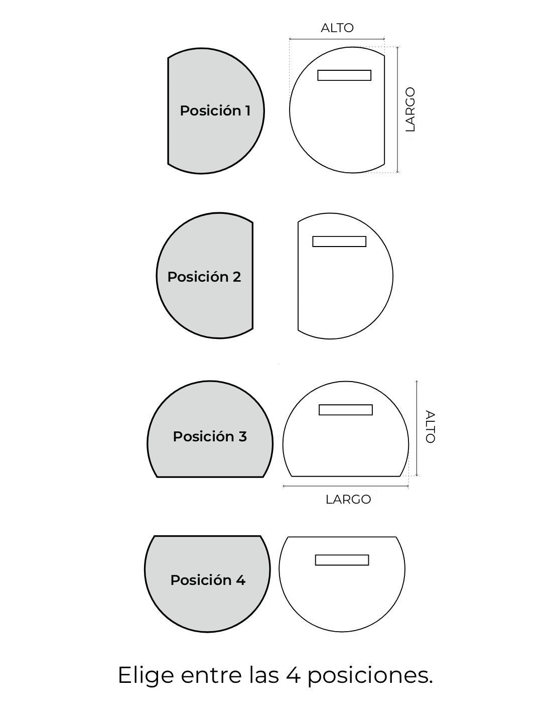 Espejo disponible para colocar en 4 posiciones (ver croquis).