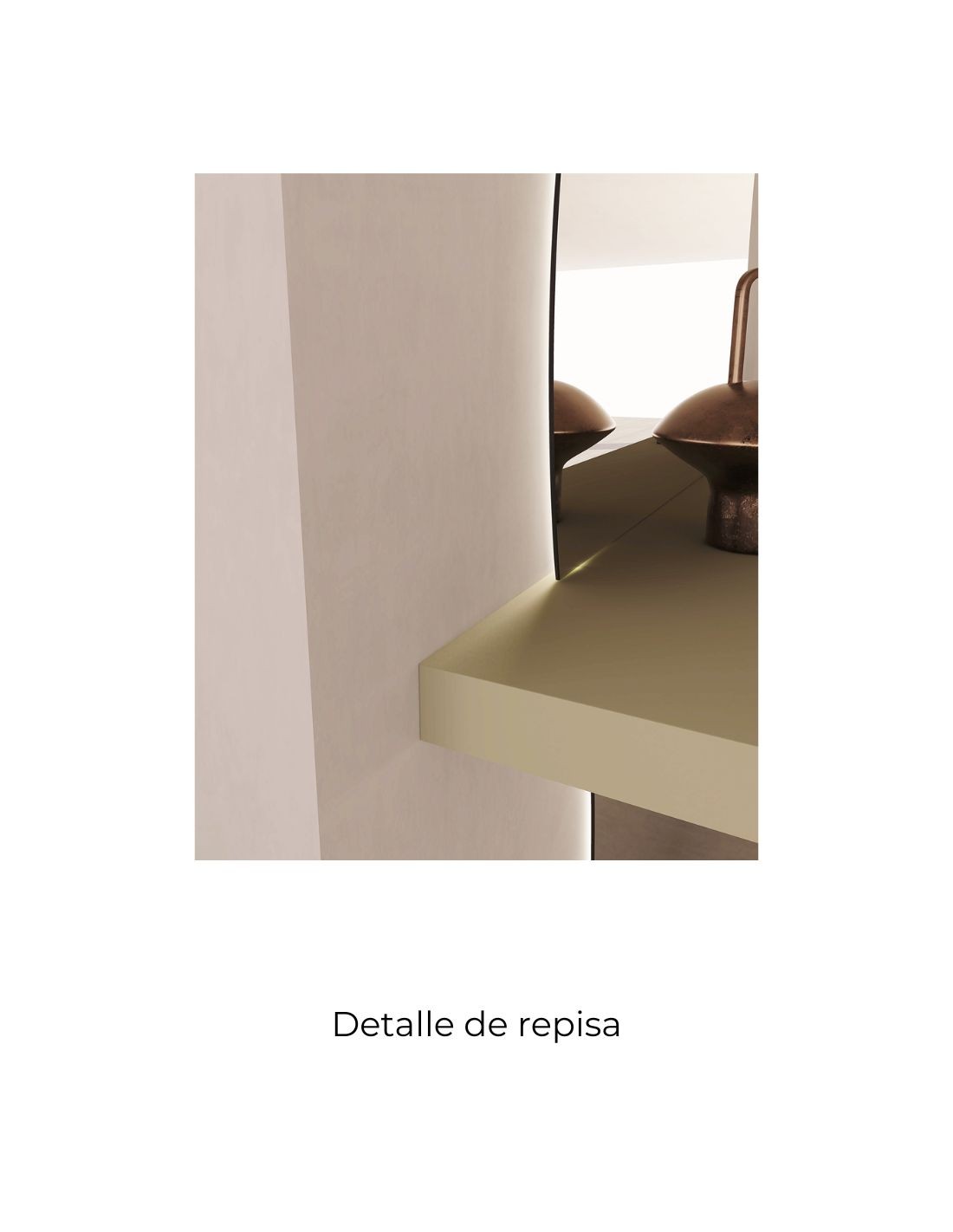 - Espejo con forma orgánica seccionado para integrar una repisa y luz ambiental