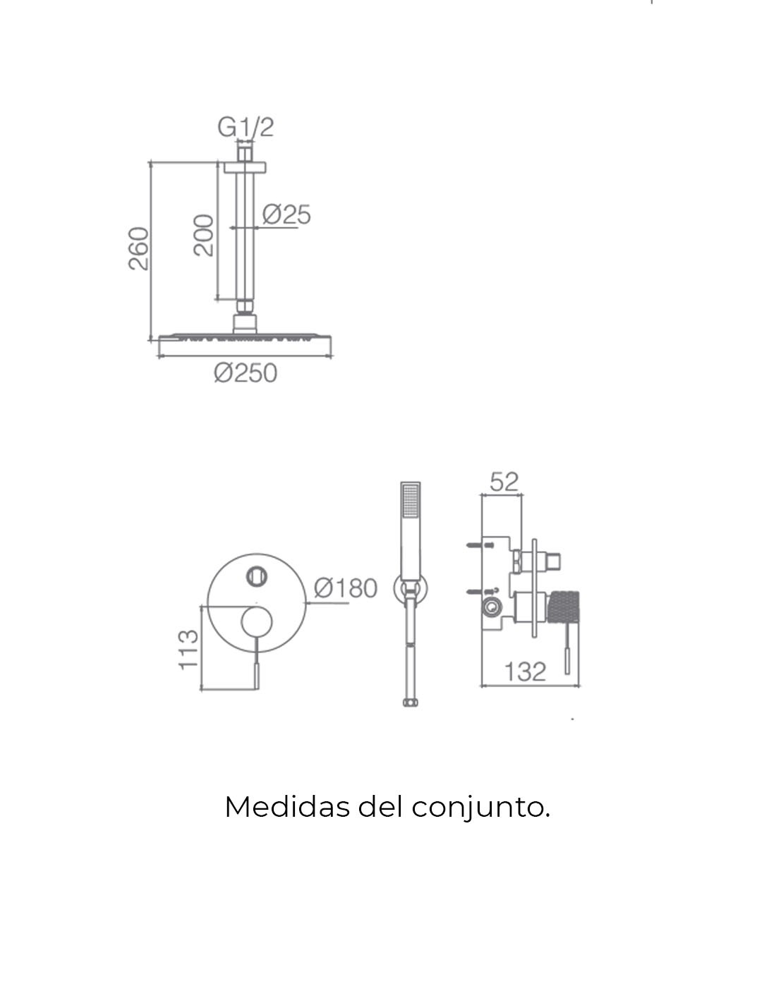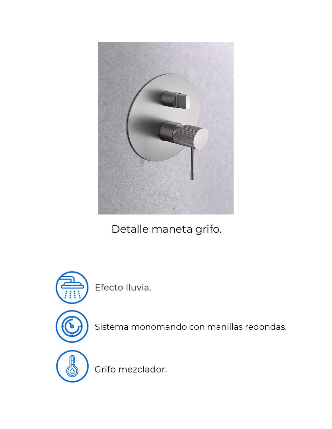 Grifería monomando empotrada directo a pared con diseño y acabado exclusivo. Rociador a techo y teleducha incluidos en el precio.