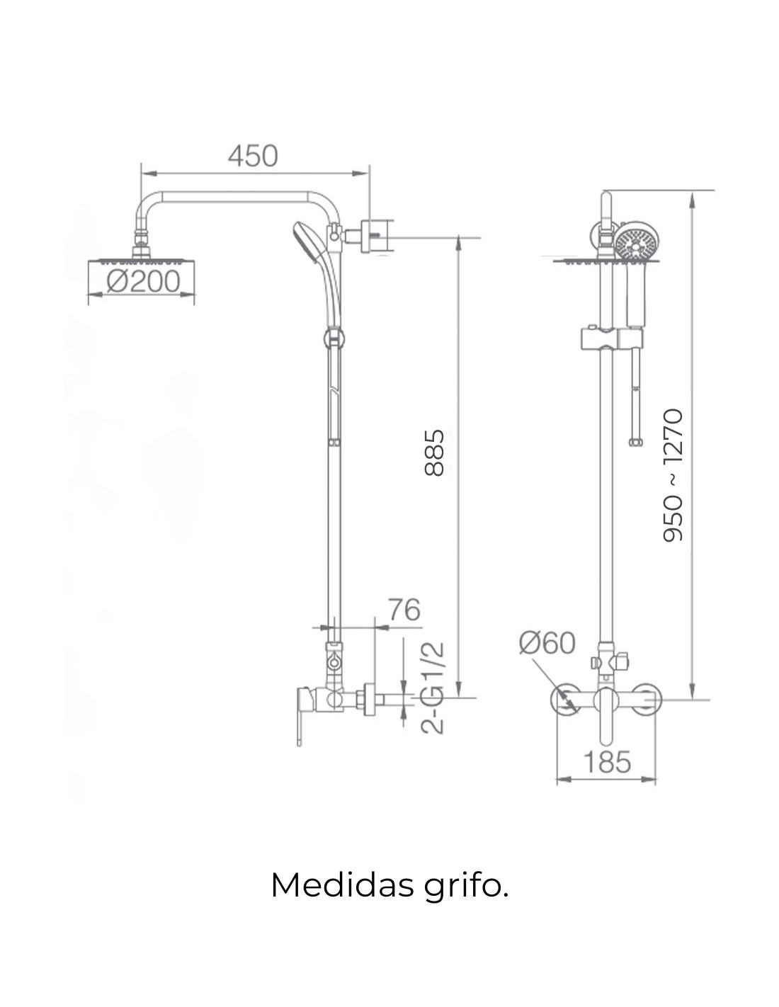 Equipada con un grifo monomando, esta columna permite un control preciso del caudal y la temperatura del agua, ofreciendo una experiencia de ducha cómoda y eficiente. Además, cuenta con ducha superior tipo lluvia y teleducha de mano, combinando confort y practicidad en cada uso.