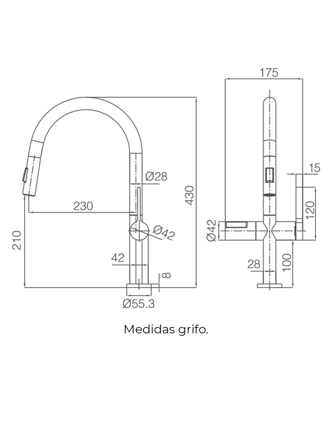- Tecnología on/off (start/stop) con sensor de movimiento y panel digital que muestra la temperatura de agua.
