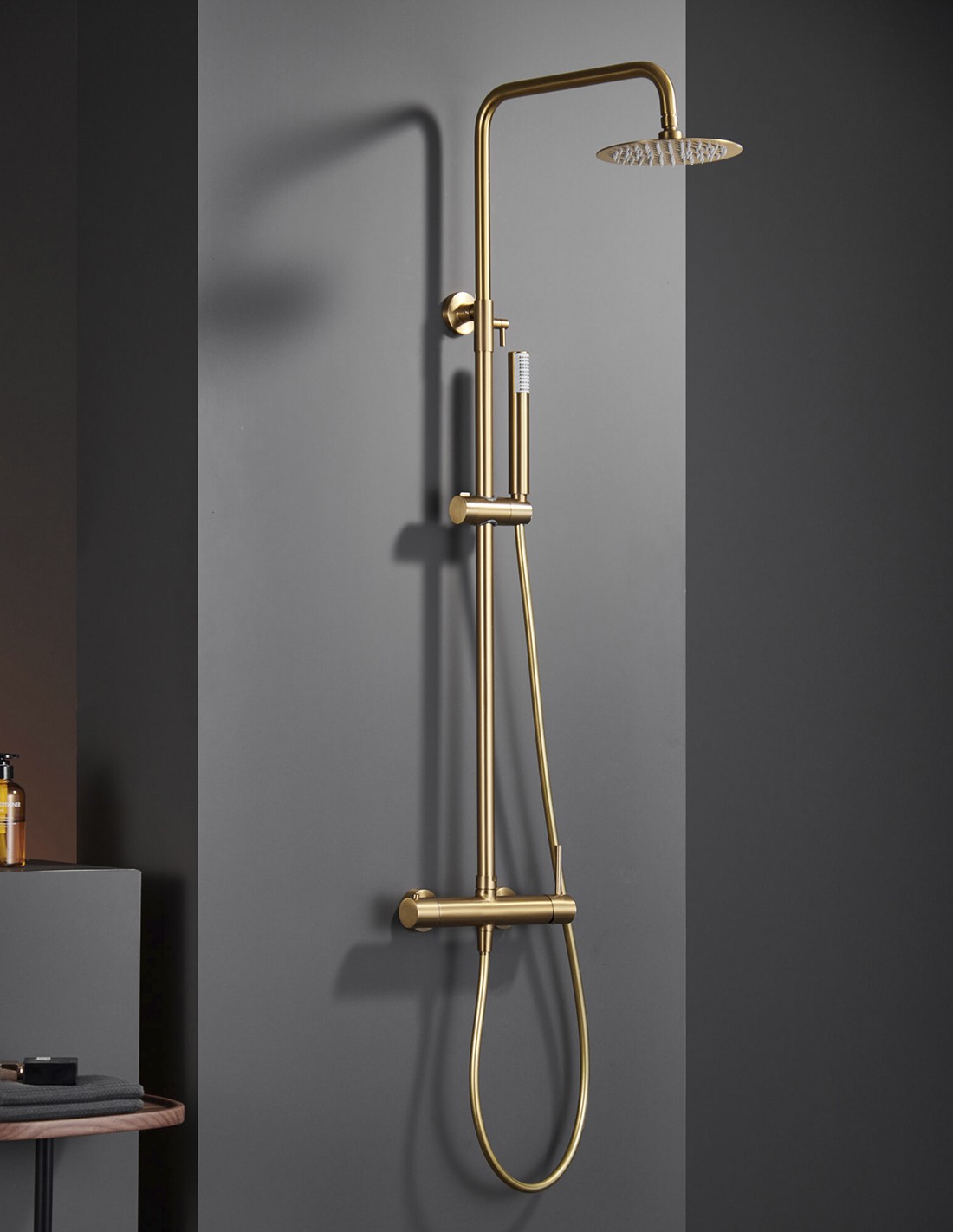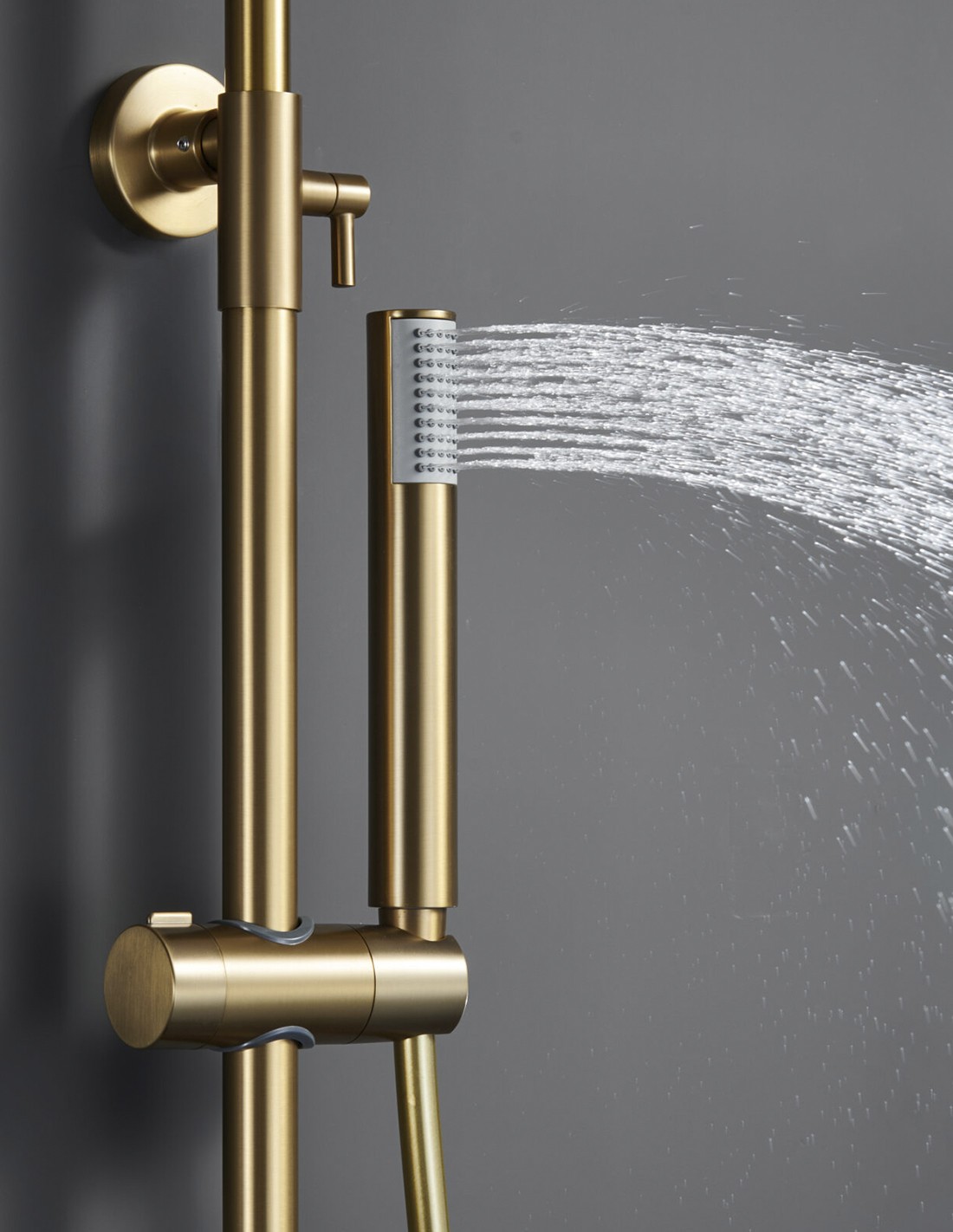 Barra de ducha monomando oro cepillado modelo Monza de Imex ambiente
