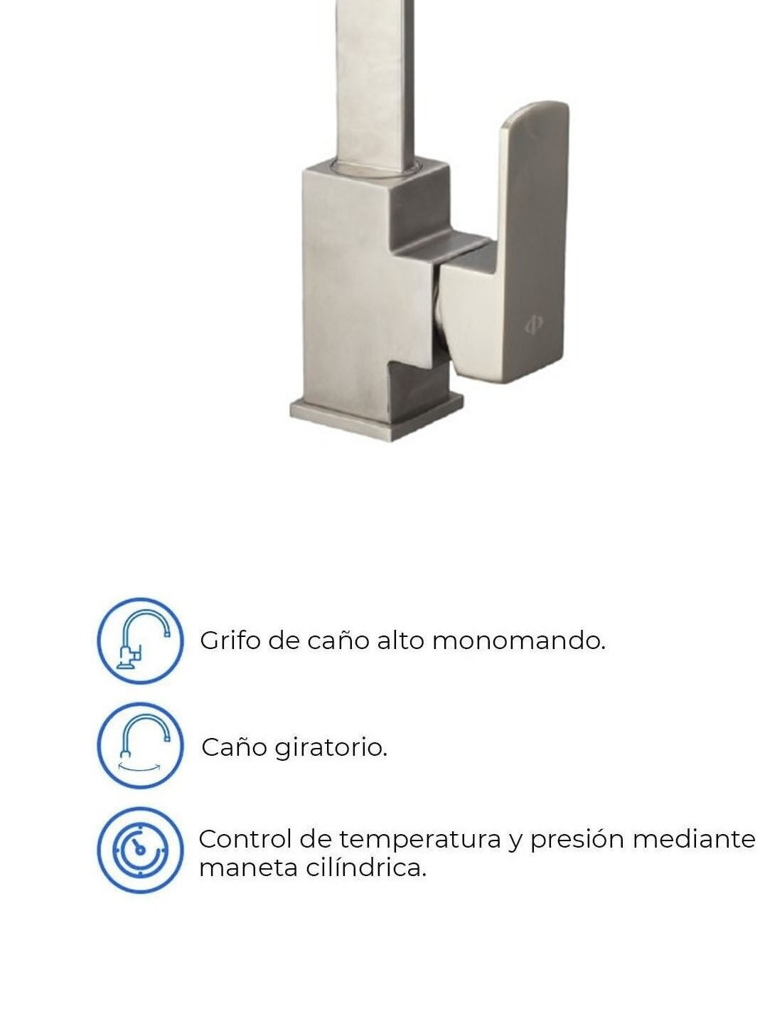 Características principales del Grifo cocina plano monomando acero - Quadra de GME: