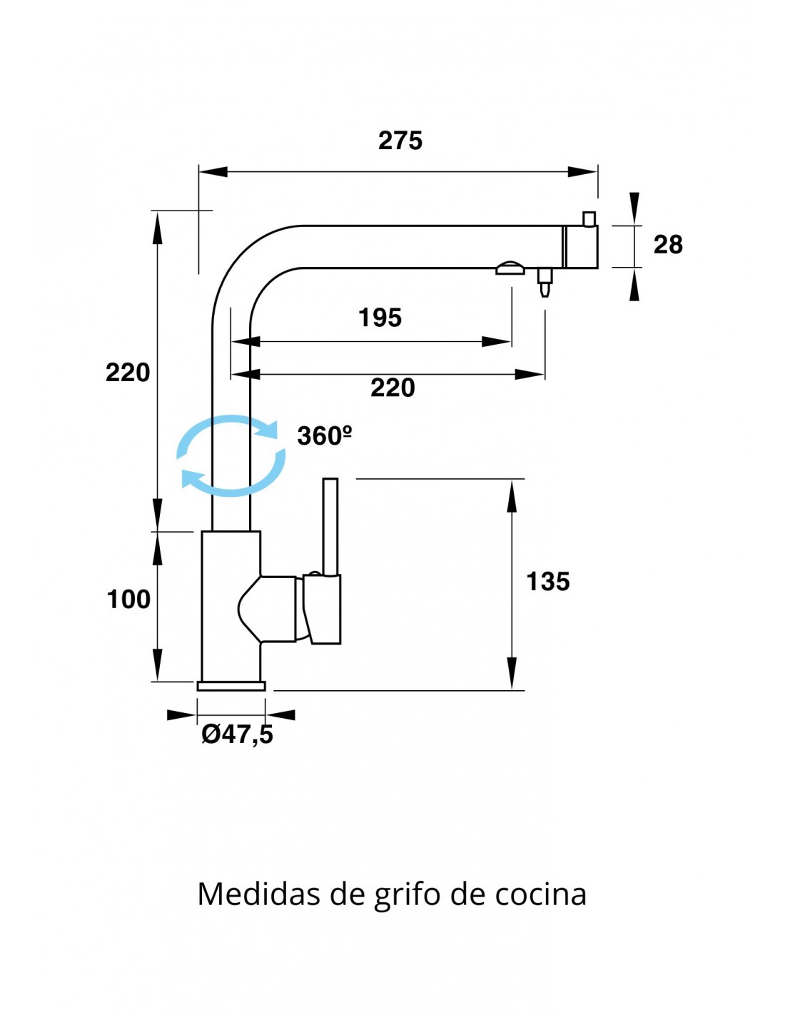 - Caño curvado con sistema giratorio 360º.